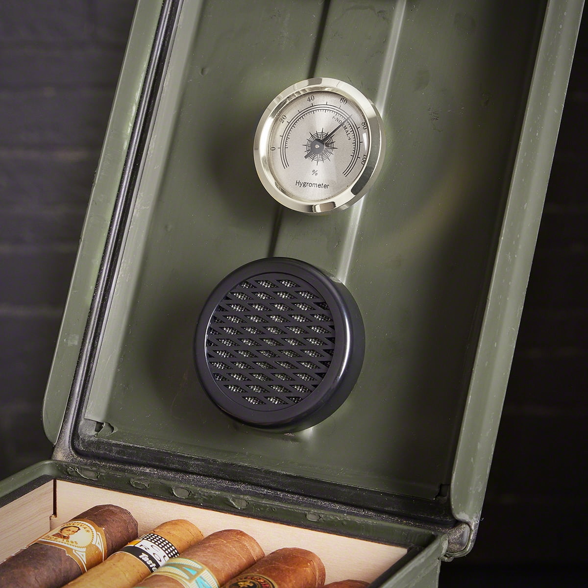 Safe, secure, and travel-ready cigar humidor The ammo can humidor is a fantastic gift for cigar-loving husbands and dads Ammo can is engraved with a title, name, and date Make this an unforgettable birthday or anniversary gift The ammo can measures 12″ x 7.5″ x 6″
