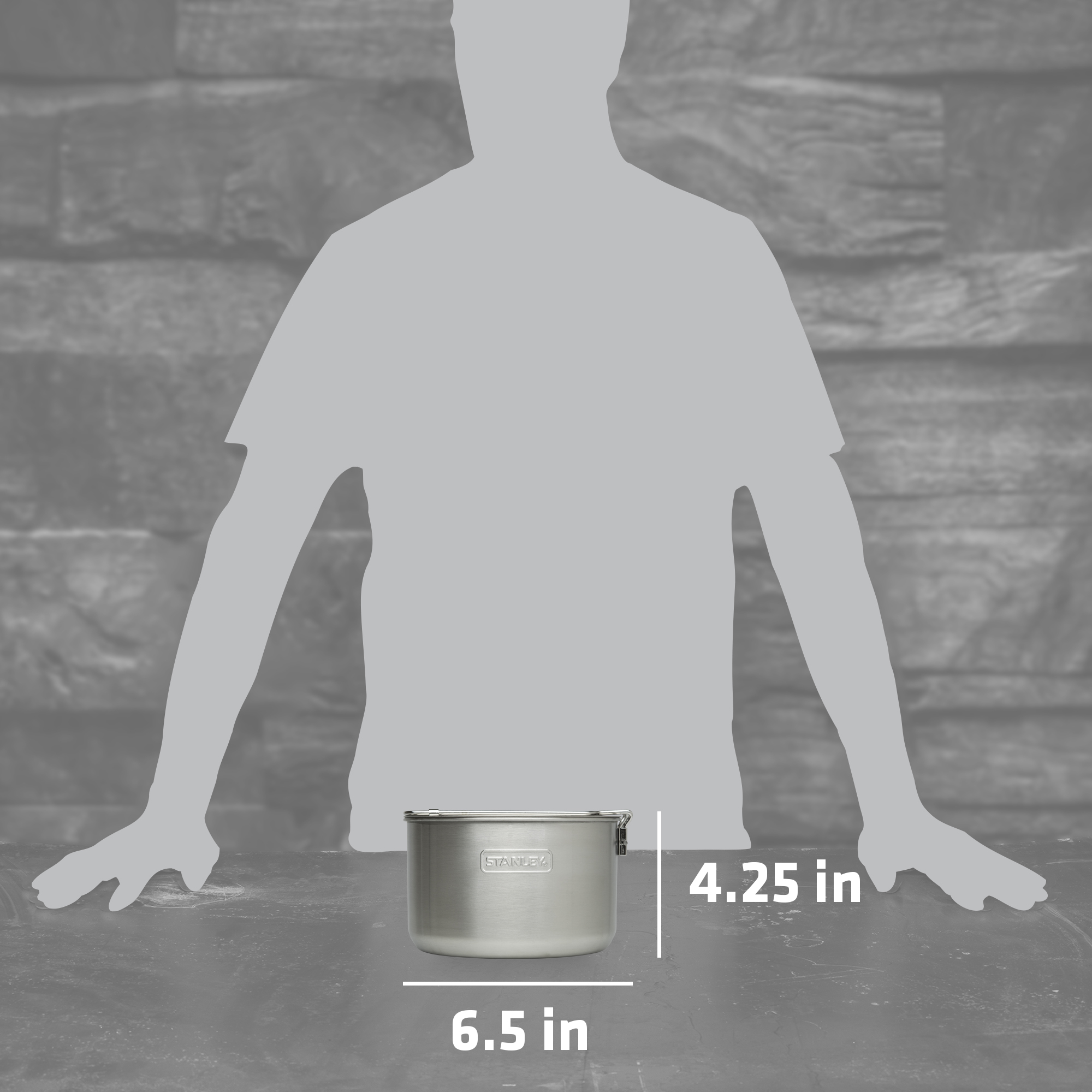 CAMP LIKE A PRO: Everything you need to whip up a hearty meal. This Stanley Adventure Two Bowl Camping Cookware Set with 8-piece camping accessories set includes (2) bowls (20 oz/591 ml, (2) bowl lids that double as cutting board, spatula with extending handle, ladle with extending handle, pot (1.58 qt / 1.5 l), and stainless steel vented pot lid. SPACE SAVING DESIGN: We’ve designed the whole set to nest together to save on space. LEGENDARY STANLEY QUALITY: Whether you’re camping, hiking, backpacking, or tailgating, these outdoor camping accessories withstand all the adventure. The dishwasher-safe pots and pans are made using 18/8 stainless steel that won’t rust or break. PERFECT GIFT: looking for the best gifts for outdoorsmen? A Father’s Day, Christmas, or birthday gift for the man obsessed with nature? This Stanley Cook Set is just what you need to celebrate the occasion. LIFETIME WARRANTY: ‘BUILT FOR LIFE’. Since 1913 we’ve promised to provide rugged, capable gear for food and drink, built to last a lifetime. It’s a promise we still keep. Stanley products purchased from Stanley Resellers come with a lifetime warranty.