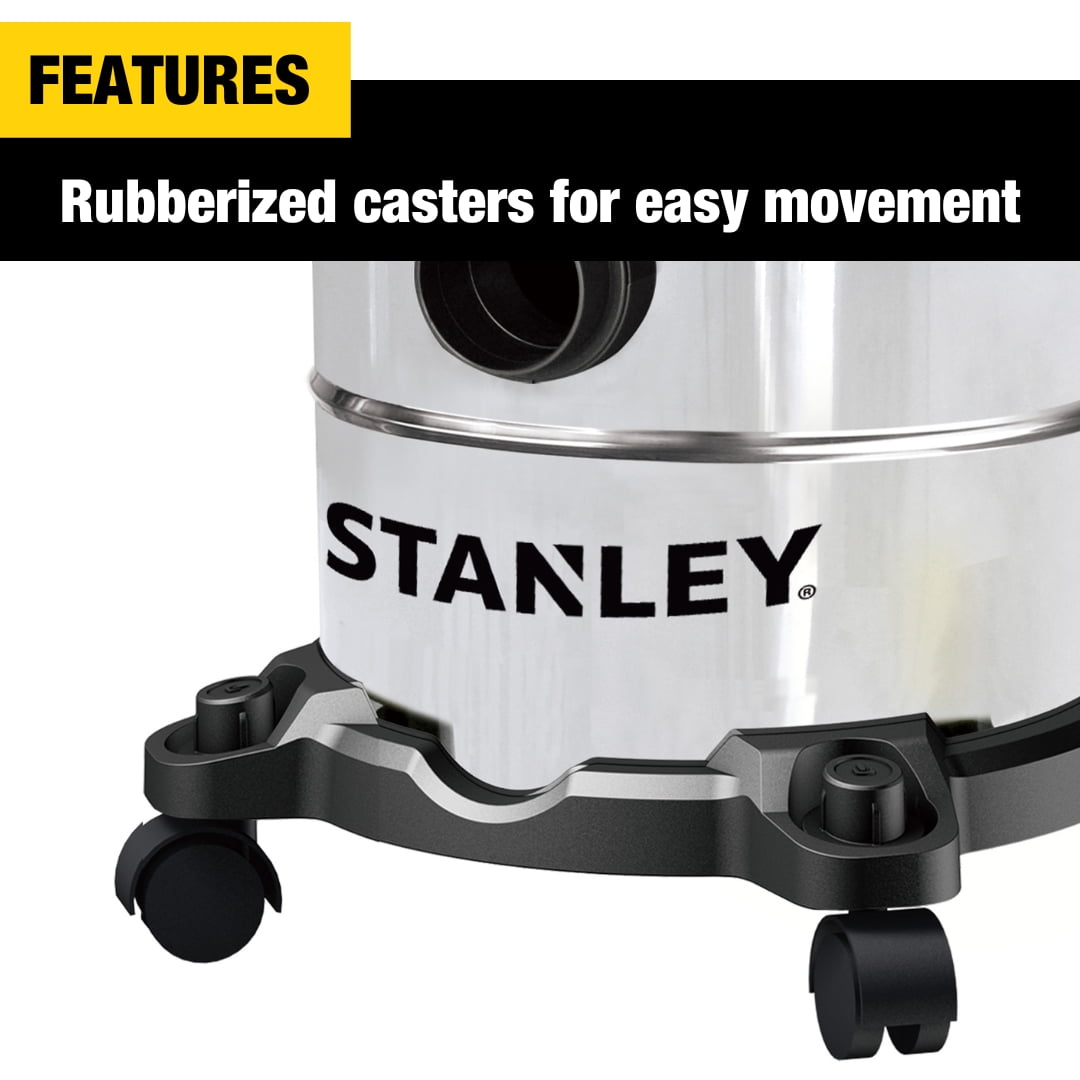 The Stanley SL18115 3-in-1 shop vacuum for wet and dry cleaning or blowing way debris, features a 4 peak HP motor, 5-gallon stainless steel tank and a tool organizer to keep your accessories handy. Built with swivelling casters and a strong handle it is easy to move. It has a 10 ft electric cord to easily reach your cleaning projects.