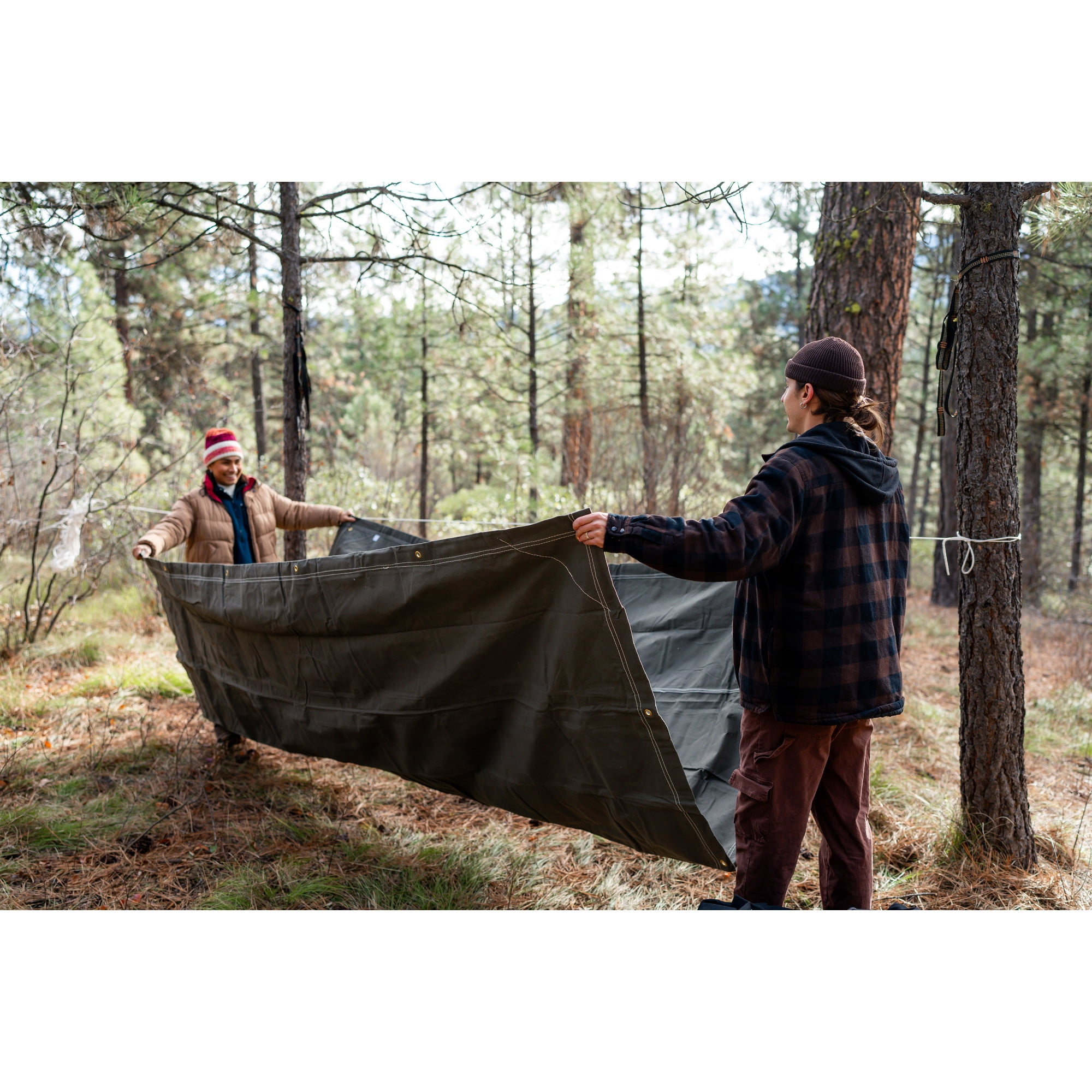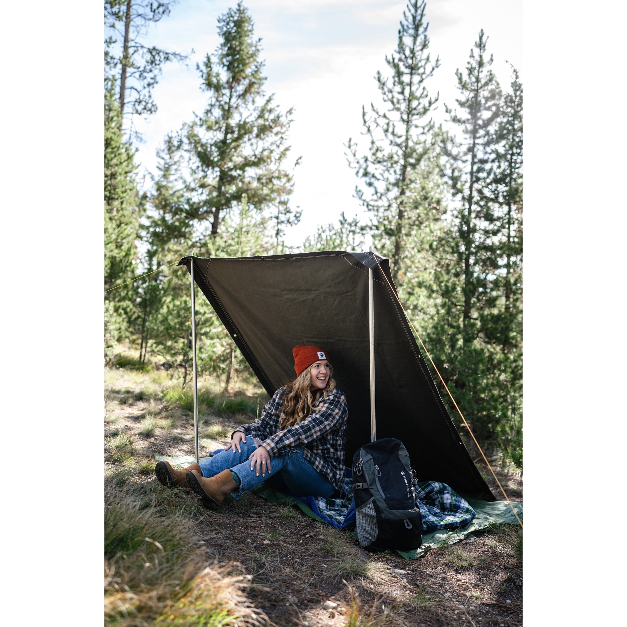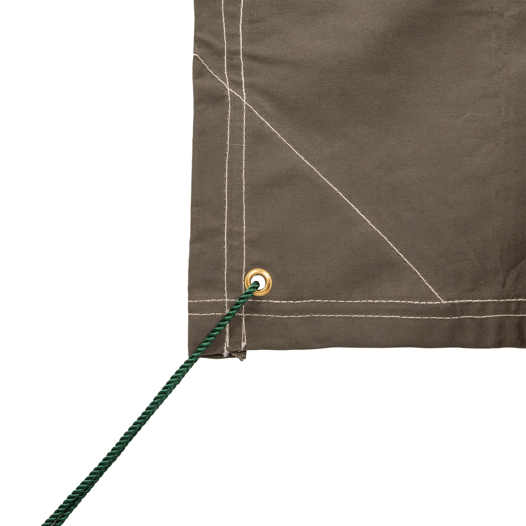 Some jobs are too tough for plastic-and that’s why you’ll be glad you bought this Stansport genuine Olive Drab Green Heavy-Duty Canvas Tarp! This heavy-duty tarp is tough, durable, and reusable. It’s made of 12 oz. cotton duck canvas with additional water repellant treatment. Even the grommets are made from genuine reinforced brass! It’s ideal for use as a ground cloth, drop cloth, protective cover, canopy, and much more. The cut size of this tarp is 8 ft. x 10 ft. The finished size is 7 ft. 4 in. x 9 ft. 11 in.