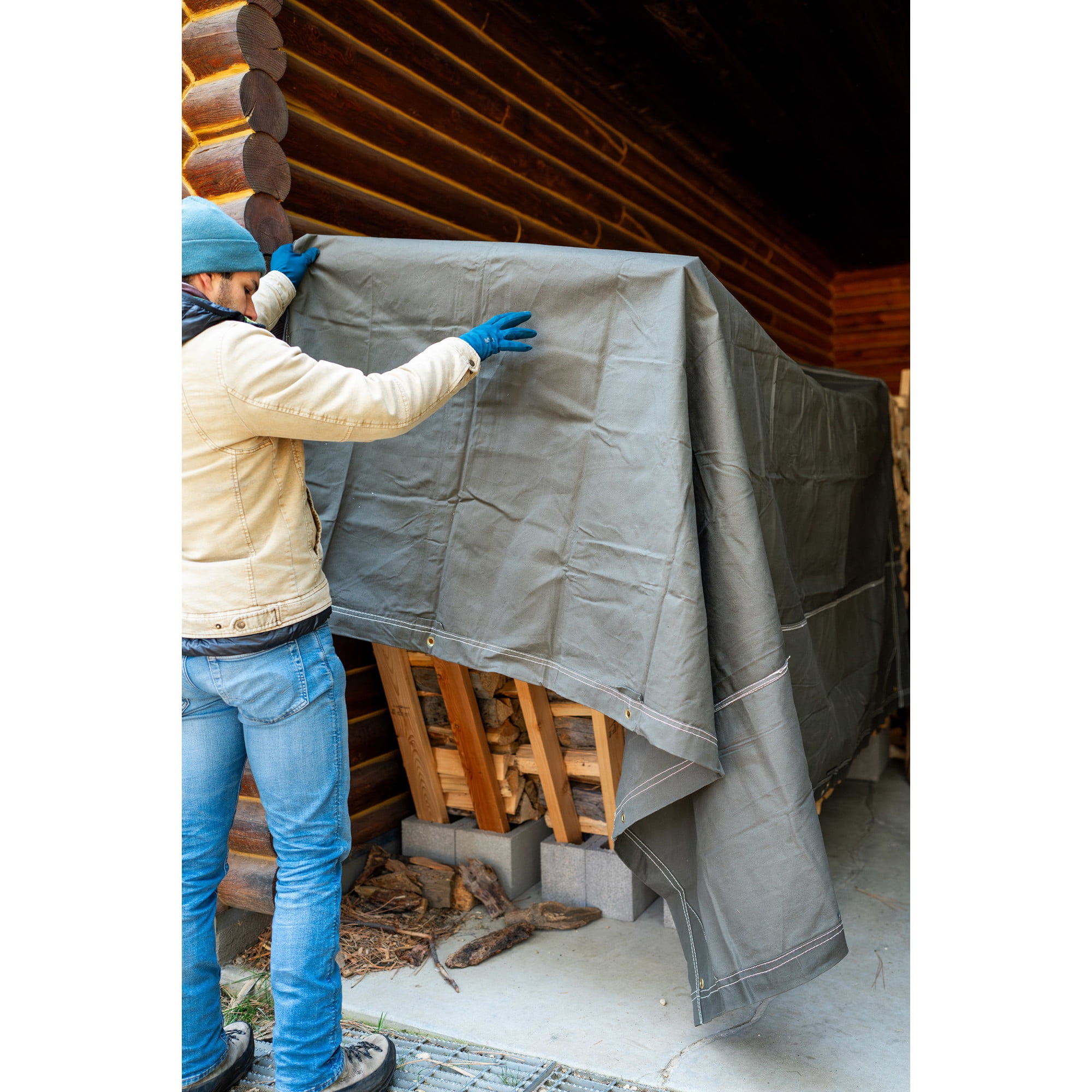 Heavy-Duty Cotton Canvas Tarp Is Tough, Durable, And Reusable Ideal For Use As A Ground Cloth, Drop Cloth, Protective Cover, Canopy, And Much More 12 Oz. Cotton Duck Canvas Is Treated For Water Repellence Reinforced Brass Grommets Cut Dimensions: 8 Ft. L X 10 Ft. W Finished Dimensions: 7 Ft. 4 In. L X 9 Ft. 11 In. W
