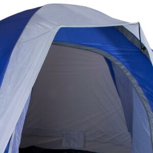 Need a tent that sleeps 6-8 for an epic camping trip The Stansport Grand 18 Family Tent is a 3-room wonder designed to fit large groups under one roof. The largest tent in the Stansport lineup, the Grand 18 has one large front door, two large foot lockers, and large inside storage pockets to keep everyone organized. The mesh ceiling adds ventilation and the included rainfly with taped seams keeps the water away.
