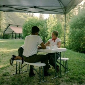 - All-in-one table with hideaway benches, perfect for BBQ’s