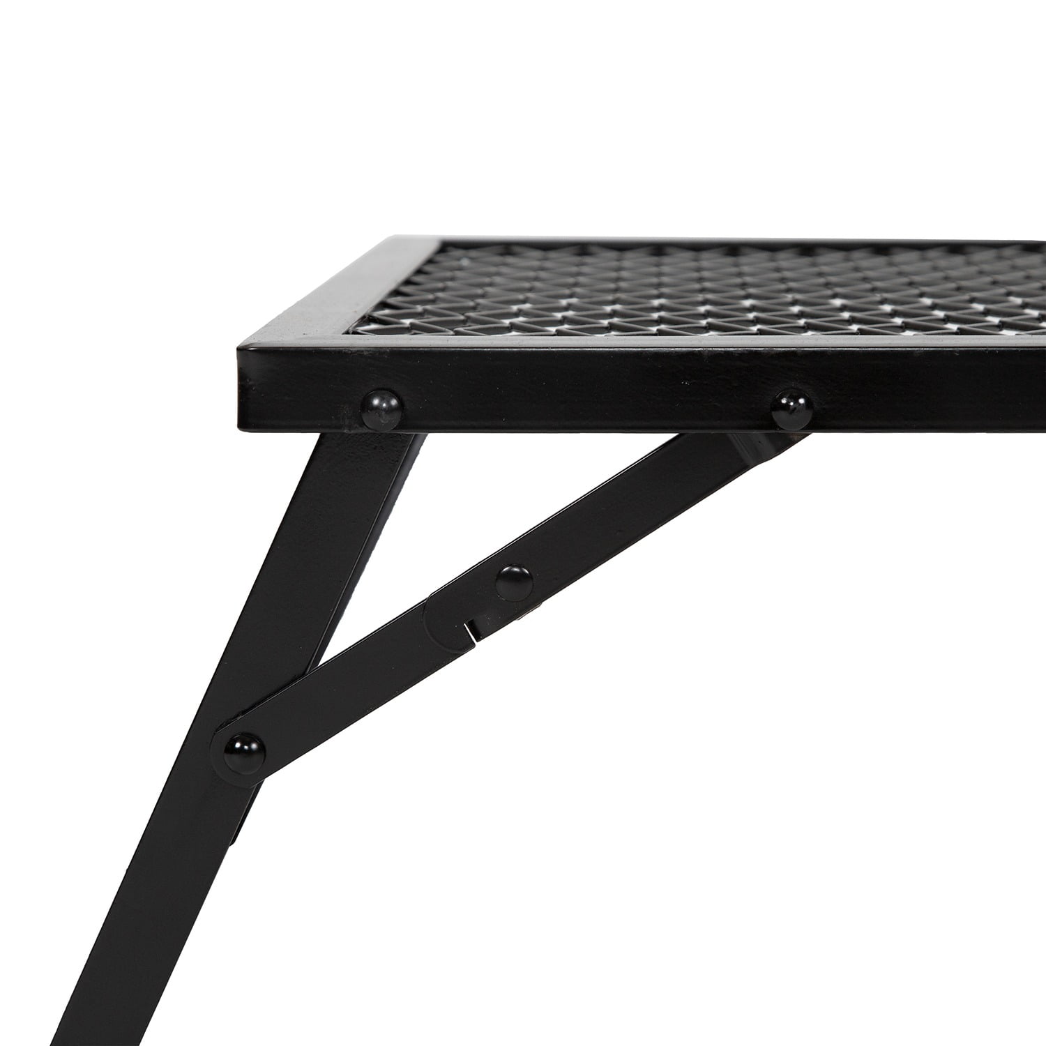 3/8 In. Diameter Steel Rods Support Up To 300 Lbs. Positive Locking Leg Hinges Add Strength And Provide Stable Cooking Surface Heavy Steel Mesh Can Be Used Over Open Fire Extra Large 36 In. X 18 In. Mesh Surface Holds Dutch Ovens, Fry Pans, And Coffee Pots Easily Ideal For Hunting, Camping, Fishing Or Backyard Cook Outs