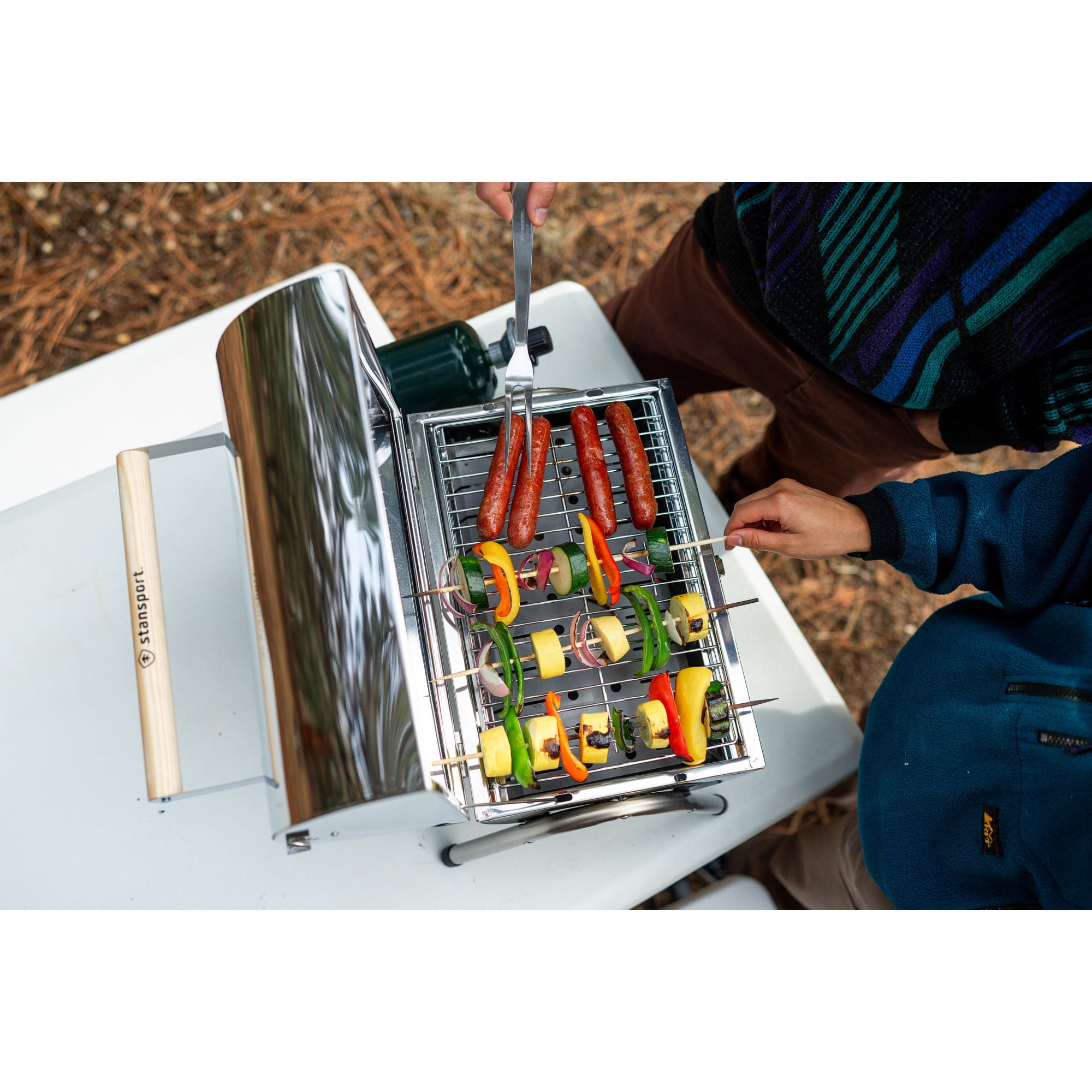 Stansport Stainless Steel Gas Barbeque Grill: Durable stainless steel construction 126 sq in cooking surface 10,000 BTU output grill burner Lightweight and easily transported Uses 16.4 oz disposable propane cylinder Outdoor barbecue grill can be taken camping, tailgating and more