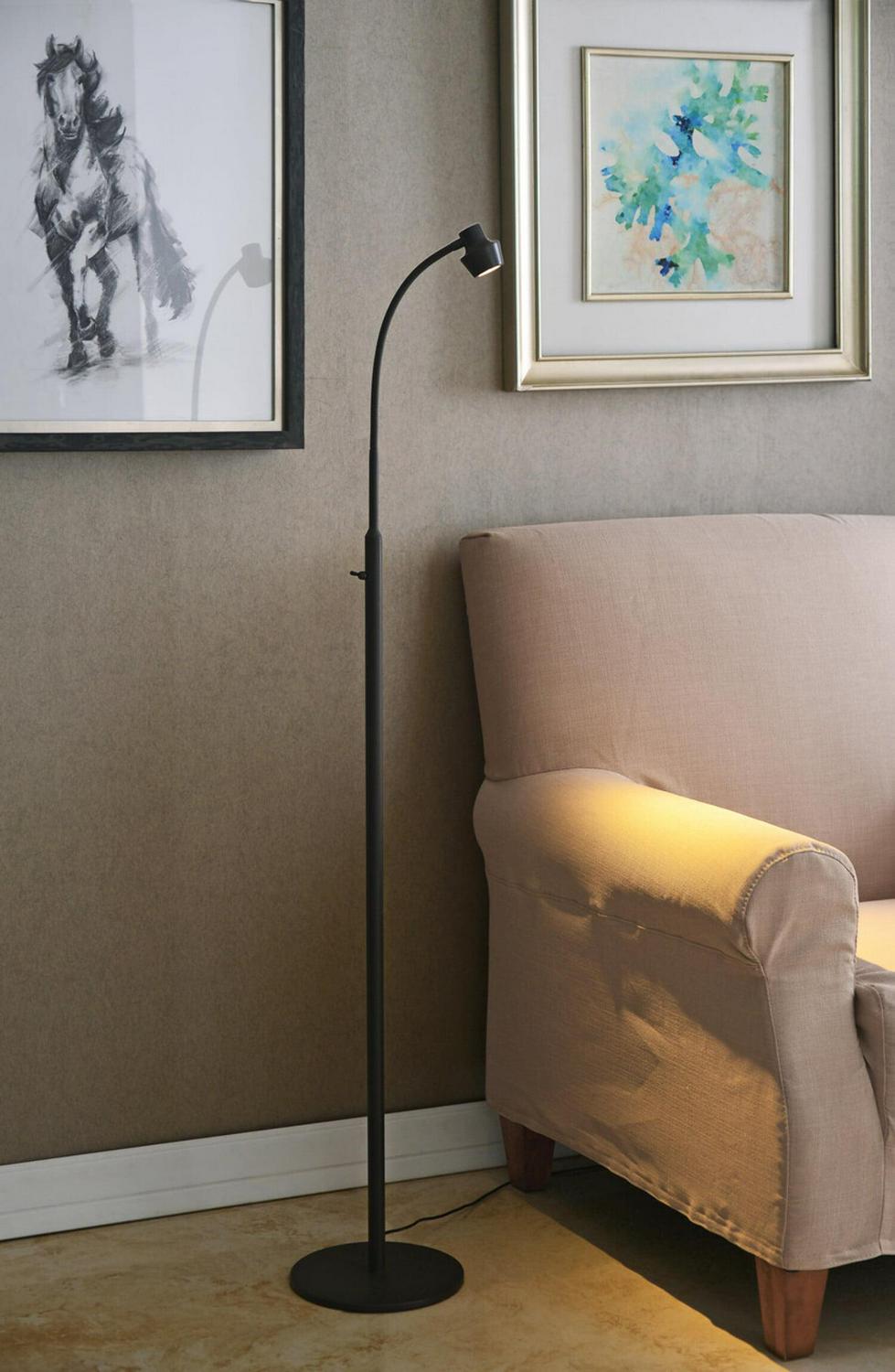 Tall, sleek and energy efficient, this modern floor lamp is ready to turn heads. The ultimate in task lighting, you can easily reposition the bright LED light with the long gooseneck. This modern functionality is complemented by the lamp’s stunning bronze finish and slim profile. Place next to your workspace in your studio so you can shine a light on all your work, whether you re simply reading or if you re working on your next masterpiece.