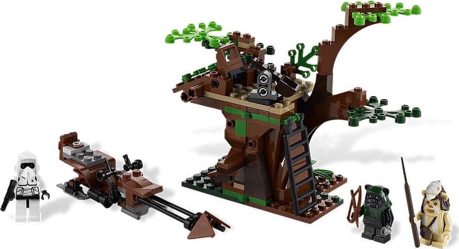 Prepare to lead the Ewoks in an ambush! Watch the Imperial scout trooper on his Imperial speeder bike and get ready to strike-Ewok style! Launch a barrage of stones and release the tumbling logs! Then hide in the secret compartment and retract the ladder! Includes Imperial scout trooper, Logray and Ewok warrior minifigures with weapons.