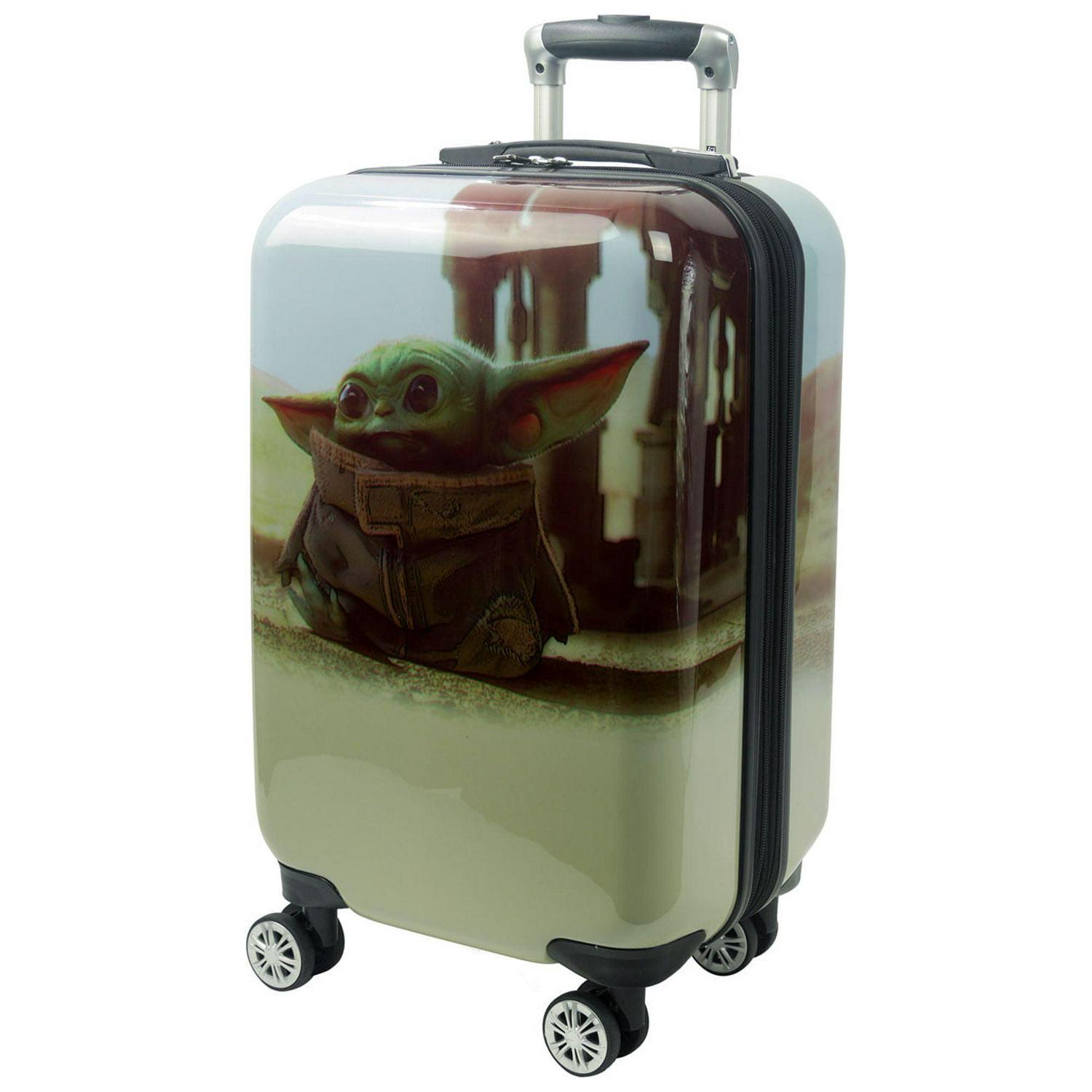 STAR WARS TRAVEL LUGGAGE: Multicolored hardshell luggage with a cute Star Wars The Child design Hardshell luggage carrier meets most airline requirements for carry-on luggage and fits into most overhead bins,ABUNDANT STORAGE: Hard luggage features a sizable polyester-lined main zip compartment for easy packing, a zip wet dry compartment for personal essentials, and clothing tie straps which let you pack more and help prevent spills,EASY PORTABILITY: Wheeled luggage features a lightweight upright design with eight 360-degree multi-directional spinner wheels and retractable handle which allows for effortless movement top and side handles allow for easy carrying and for loading into cars and trunks,DURABLE: Travel luggage bag features a hard shell ABS plastic case which protects your luggage and is easy to spot clean hardside luggage is an officially licensed Star Wars product,DIMENSIONS: Lightweight luggage spinner measures 22.5 H x 14.5 W x 9.5 D in inches, and weighs 6 lbs