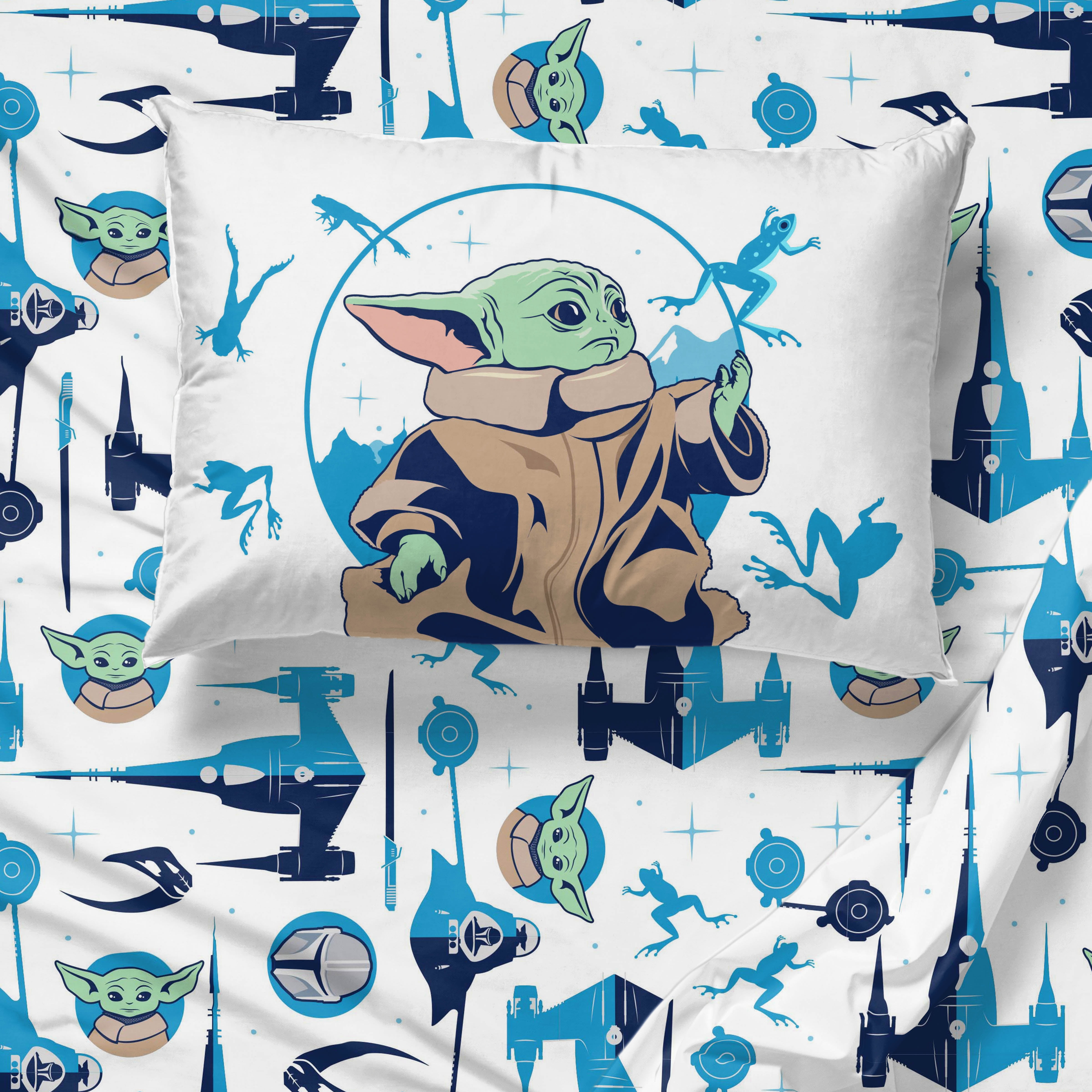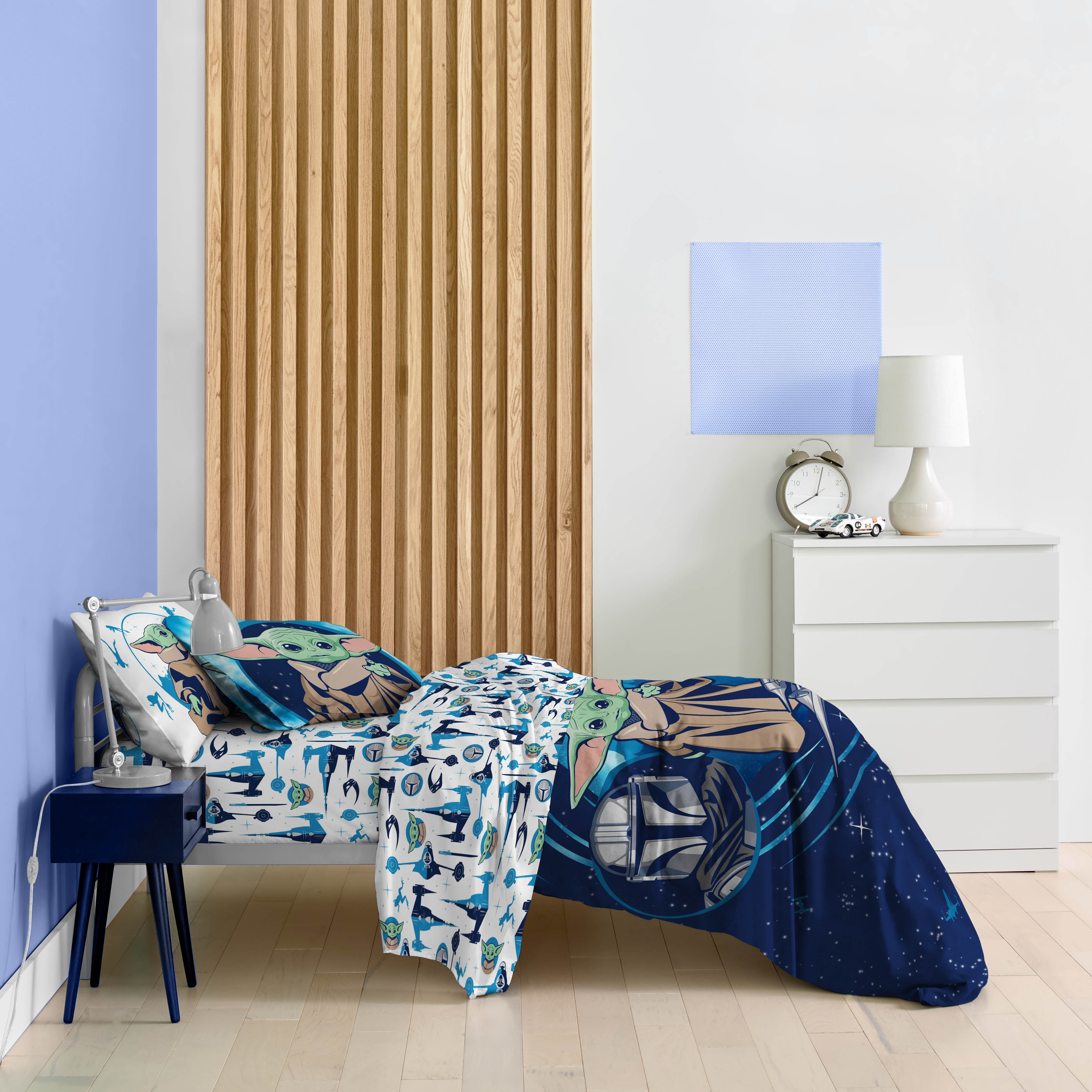 Star Wars Grogu Blue 5 Piece Twin bed Set w/ Sham, 100% Microfiber