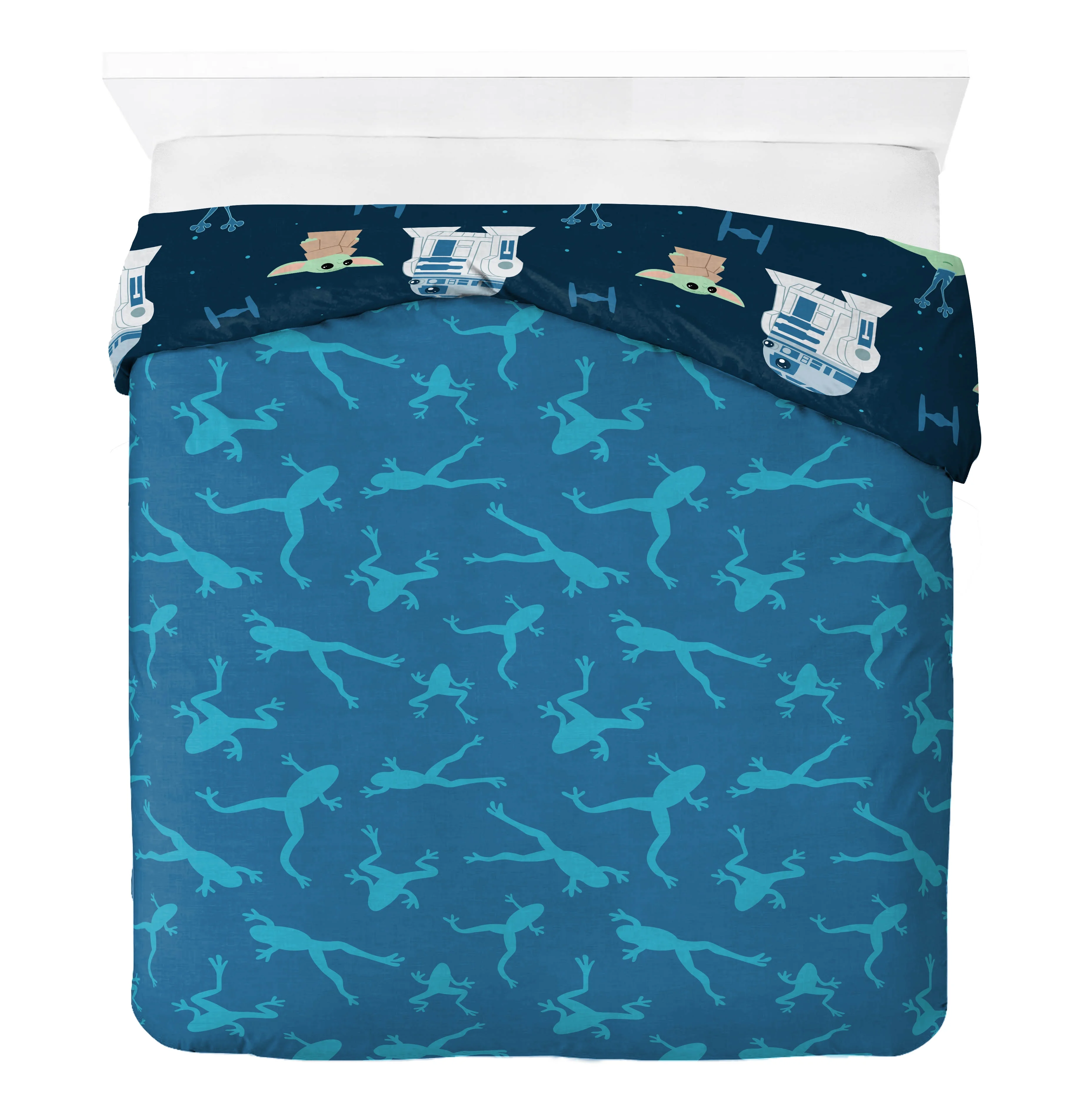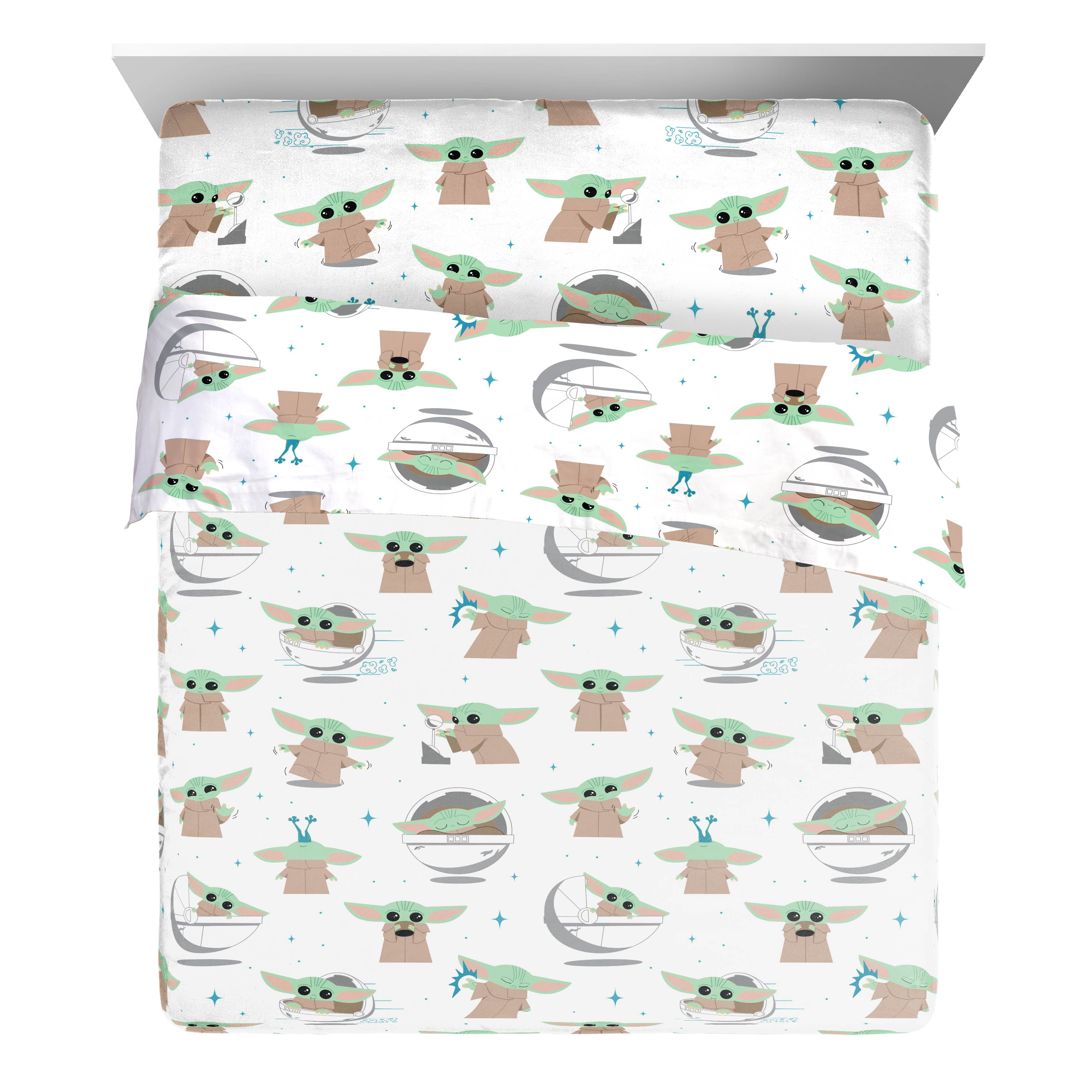 Elevate your bedding with this Star Wars The Mandolorian Blue Full Bed Set. Set includes a full comforter, fitted sheet, flat sheet, two standard sized pillowcases and two coordinating shams. Set is made from super soft 100% Microfiber, making it the perfect weight to keep you comfortable all year round. This fun printed comforter set features Grogu and The Mandolorian traveling through the galaxy. This set is the perfect addition to any Madolorian fan’s bedding. Complete the look by shopping our other Star Wars The Mandolorian home and bedding items, sold separately on .