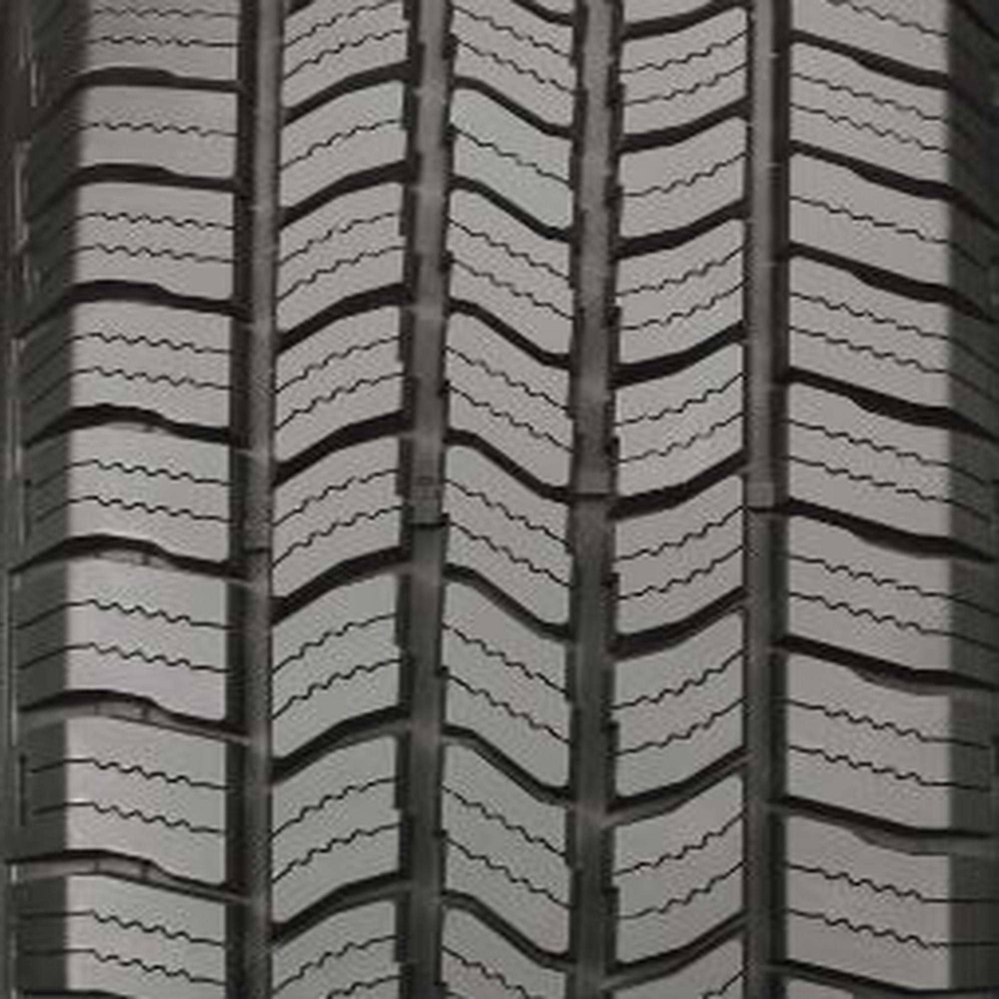 Four separate center grooves force water out of tire to improve wet traction and resist hydroplaning