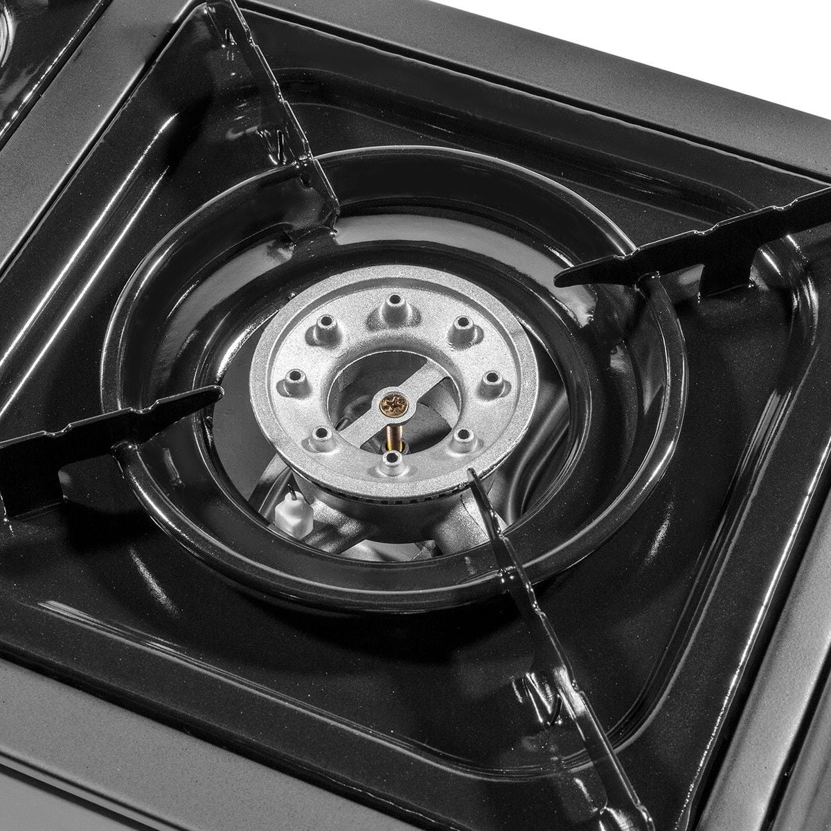 With a high heat output of 8,000 BTUs per burner altogether with 16,000 BTUs, this portable and light weighted butane range with two solid brass burners is perfect for many uses as camping, catering, and backyard cooking anywhere, when electricity is not readily available. It features a manual control knob for each burner to increase or decrease the flame separately, allowing you to cook at two different temperatures simultaneously