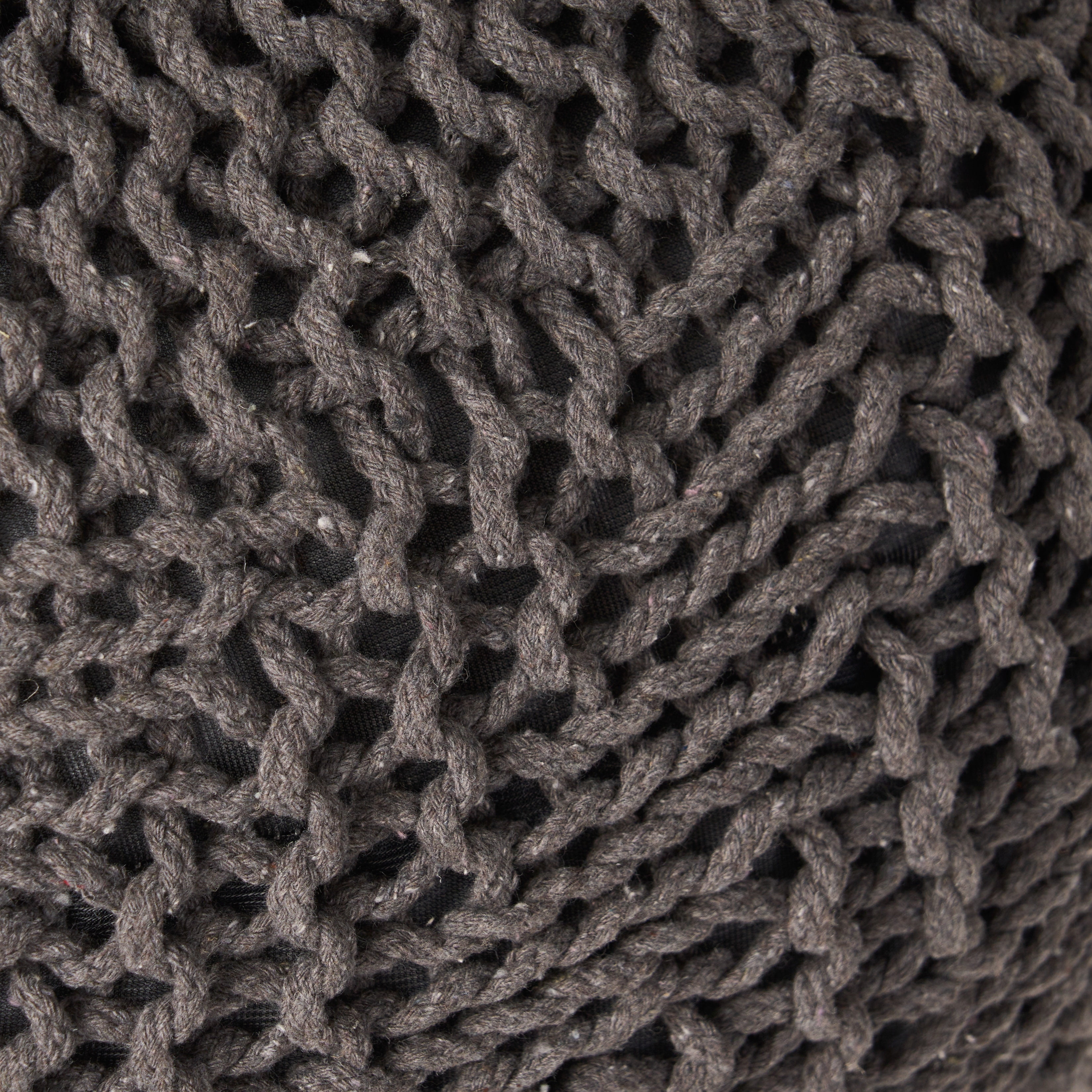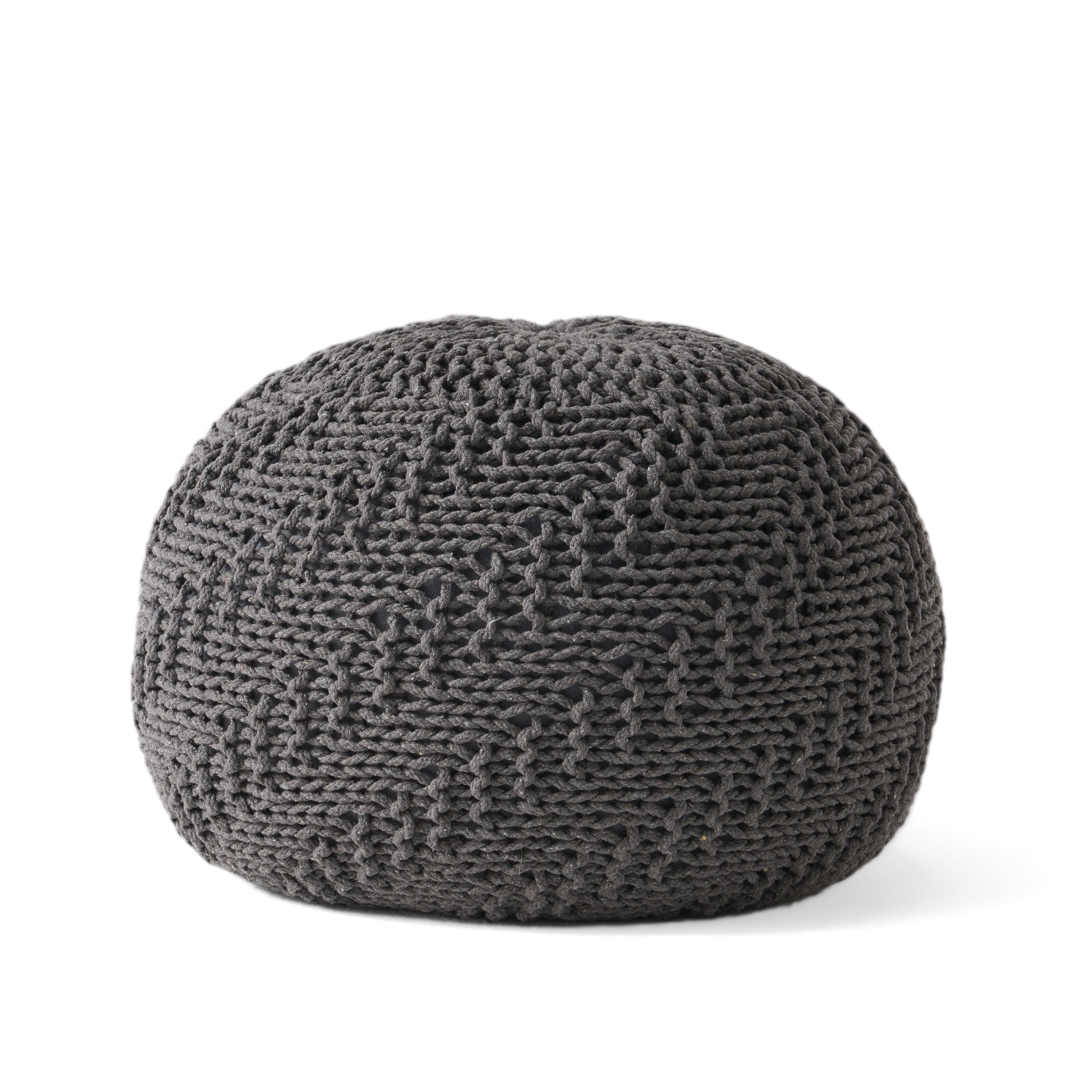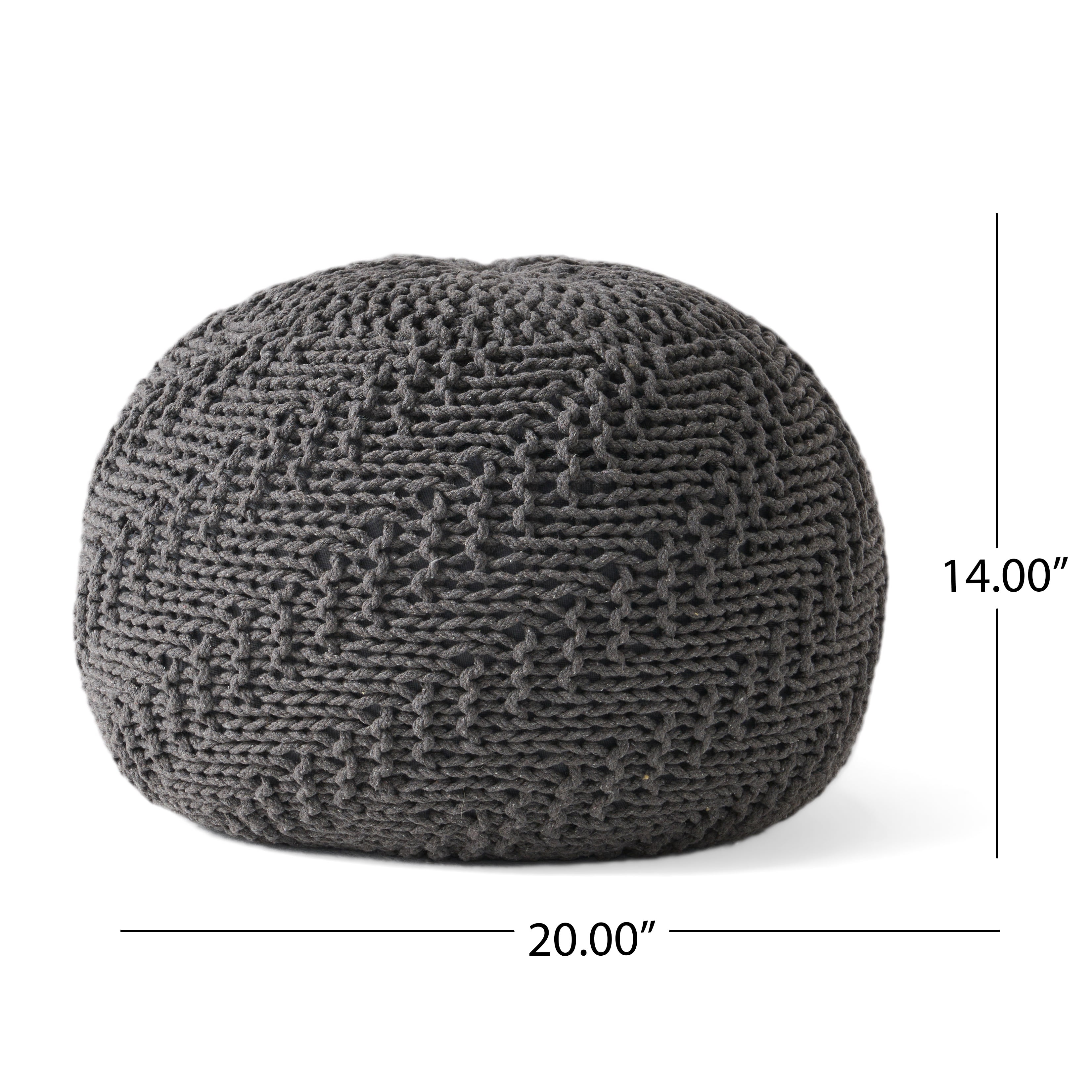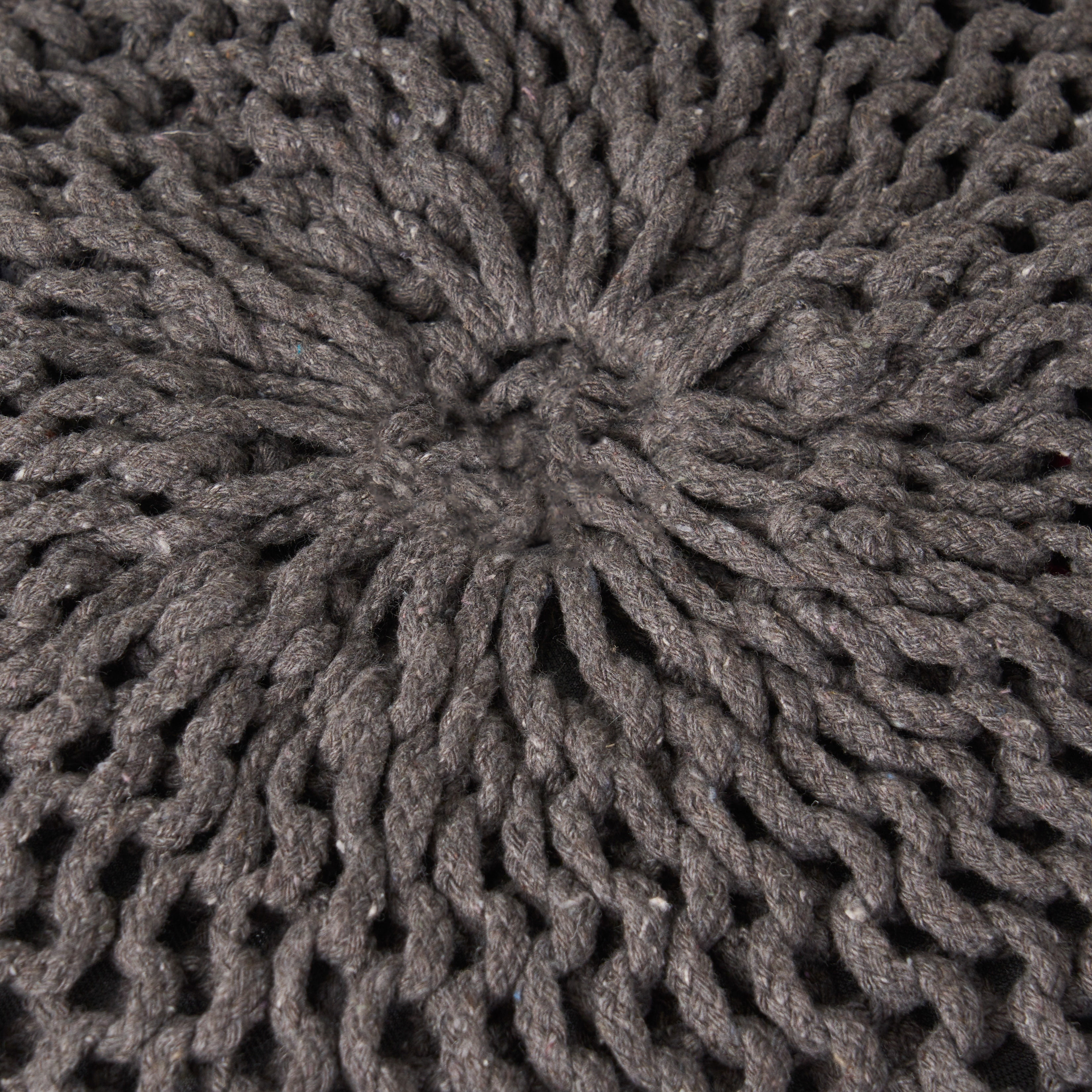 Statham Cotton Knitted Round Pouf, Dark Gray, 20″ x 14″