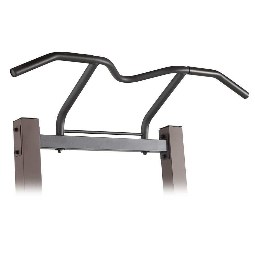 Multi-grip Pull-up Bar: Handles allow for overall back and core development; strengthen and tone your lats, shoulders, and arms. Push-up Bars: The dip handles are adjustable, place them in lower positions for push-ups. Leg hold down the foam roller VKR Arm Pad: Target and define your abs/core.