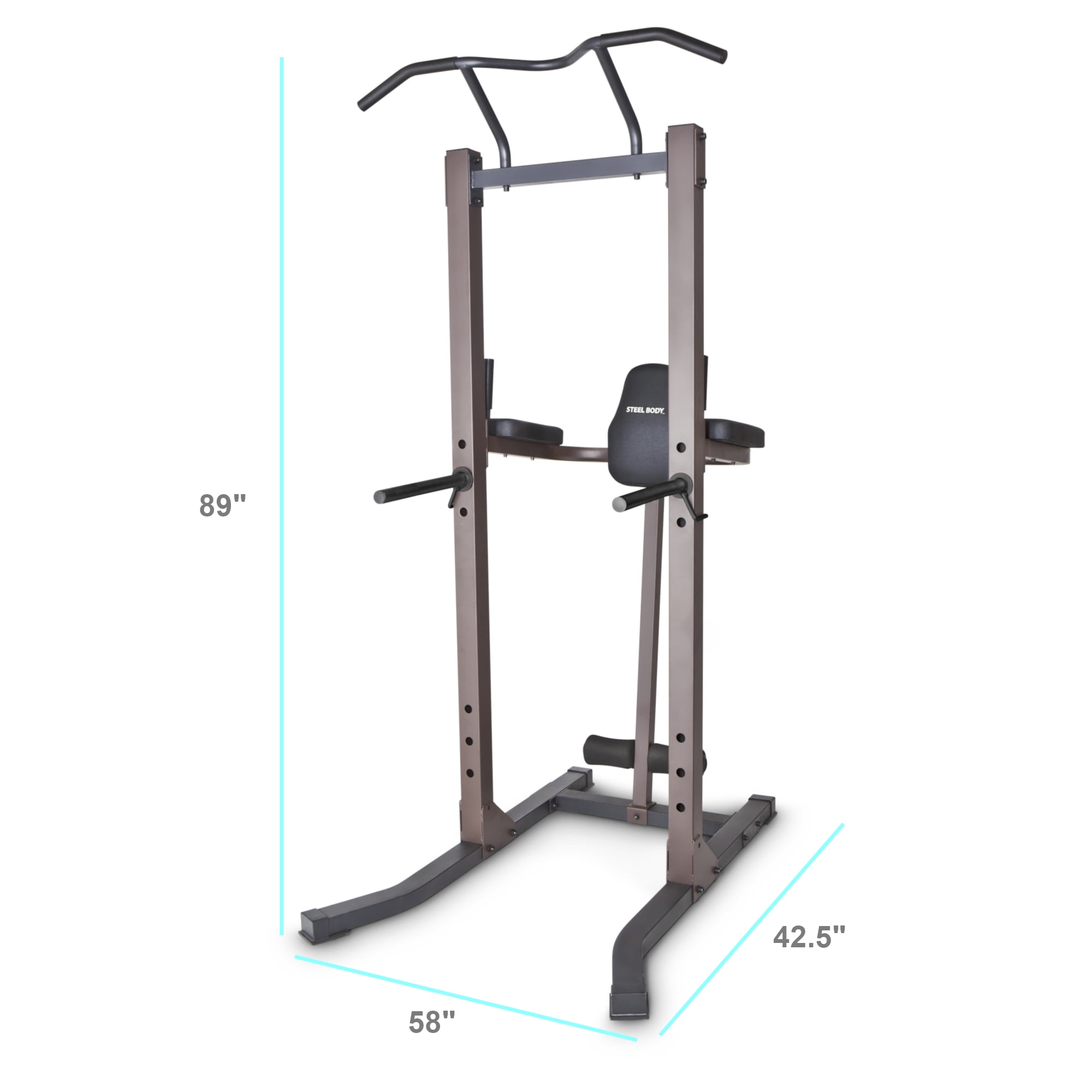 Transform your body in the comfort of your own home gym with the steel body STB-98501 power tower. Constructed from high-quality steel and thick padding the steel body power tower allows for a wide variety of exercises to strengthen and tone your entire body. Use the vertical knee raise station to sculpt your abs or target your upper body with the dip station to define your triceps, chest, and shoulders. Multi-grip pull-up handles and sit-up assist foam rollers to ensure maximum safety and comfort. The steel body STB-98501 power tower is an ideal piece of home gym equipment for users of all experience levels and the compact, versatile design leaves plenty of extra space in your home workout area.