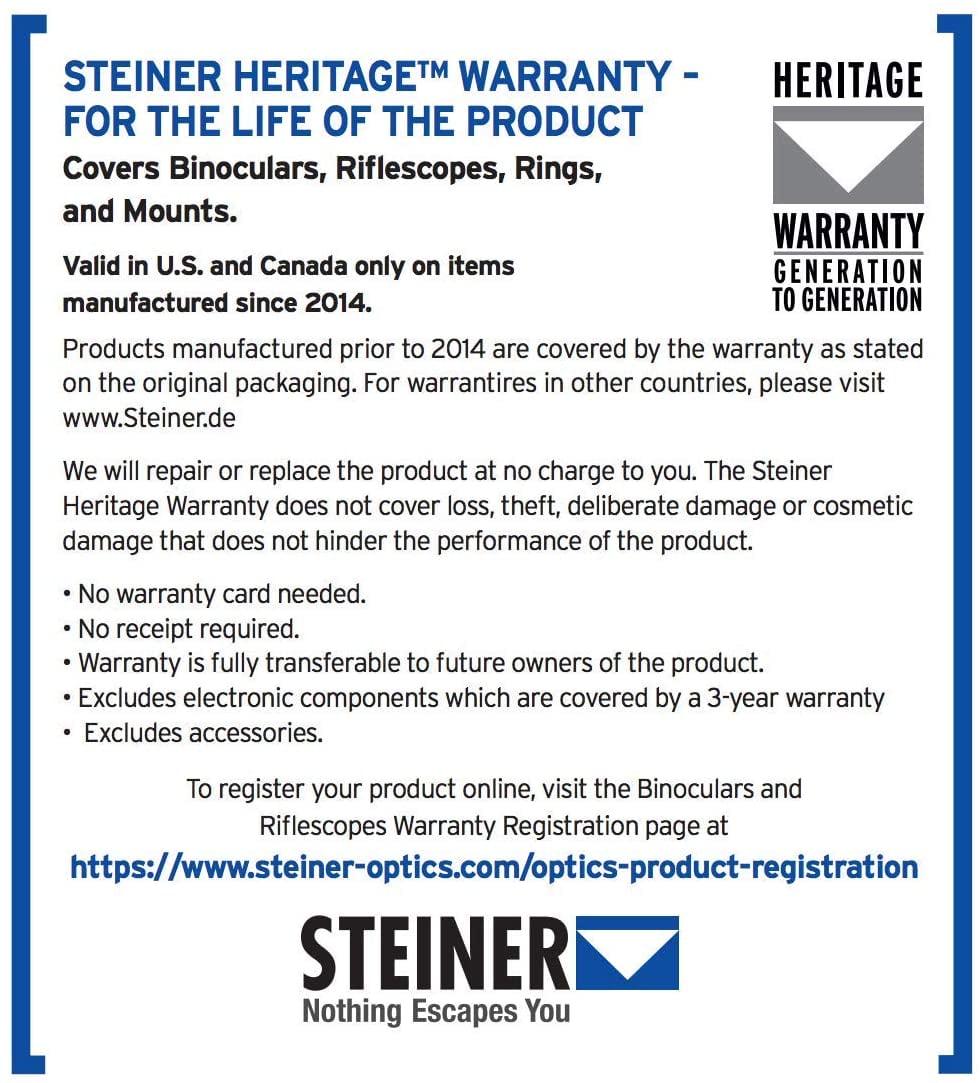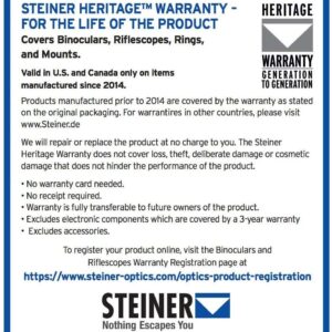 - Steiner High-Contrast coatings on every lens ensures high performance. UV Coated lens