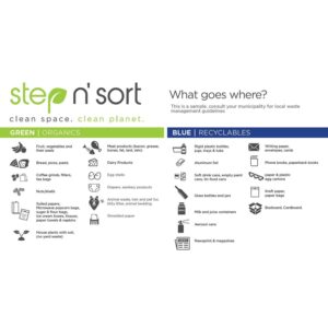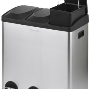 – 3-compartment trash and recycling bin, comes with a colored sticker pad for labeling your pedals