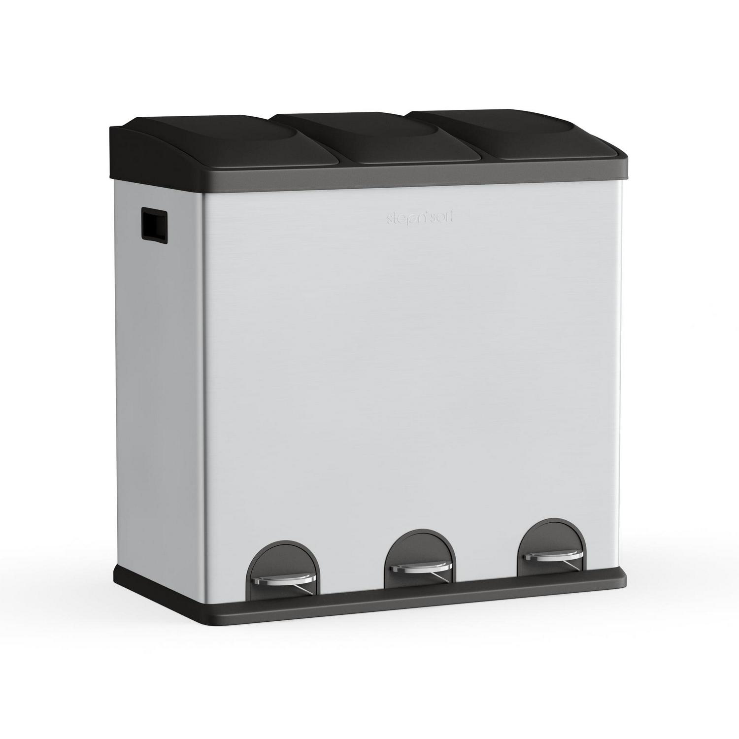 Step N’ Sort 3-Compartment Stainless Steel Kitchen Trash and Recycling Bin, 16 gal