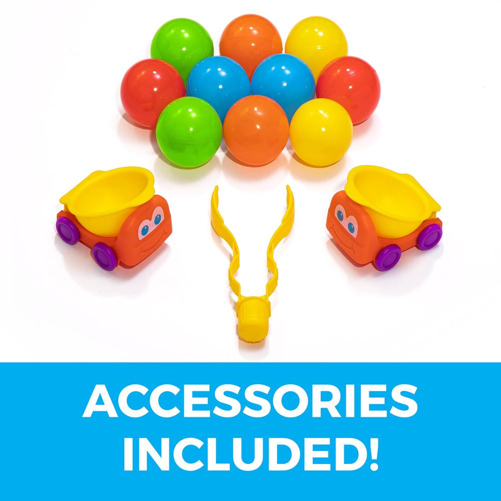 – Use the ball-picker tongs to carefully set play balls on the Ball Buddies trucks, or onto the track and watch them roll!