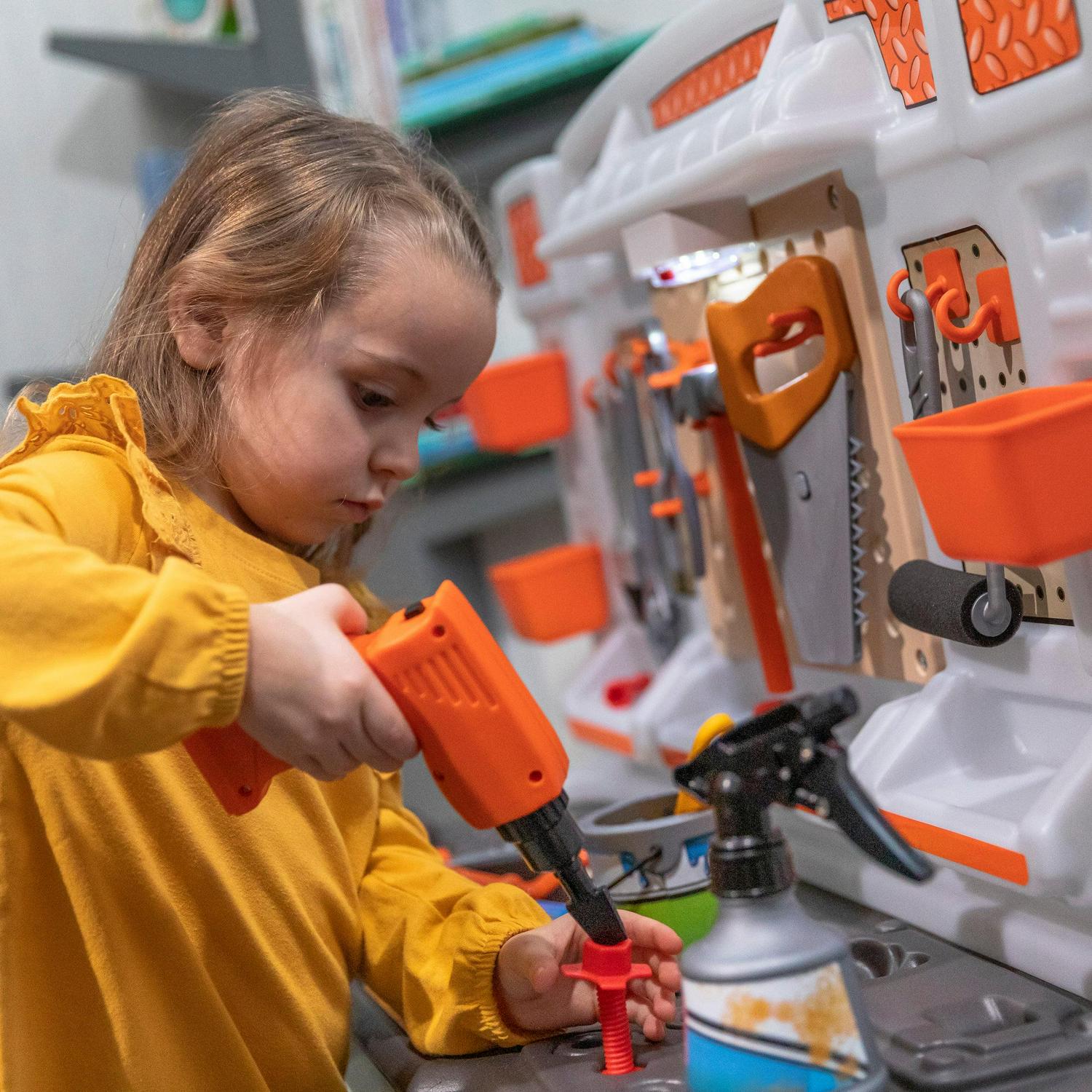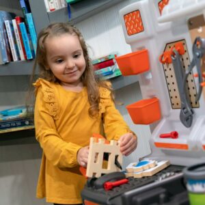 – Little builders will develop their fine motor skills, plus practice social skills when friends join the workshop play.