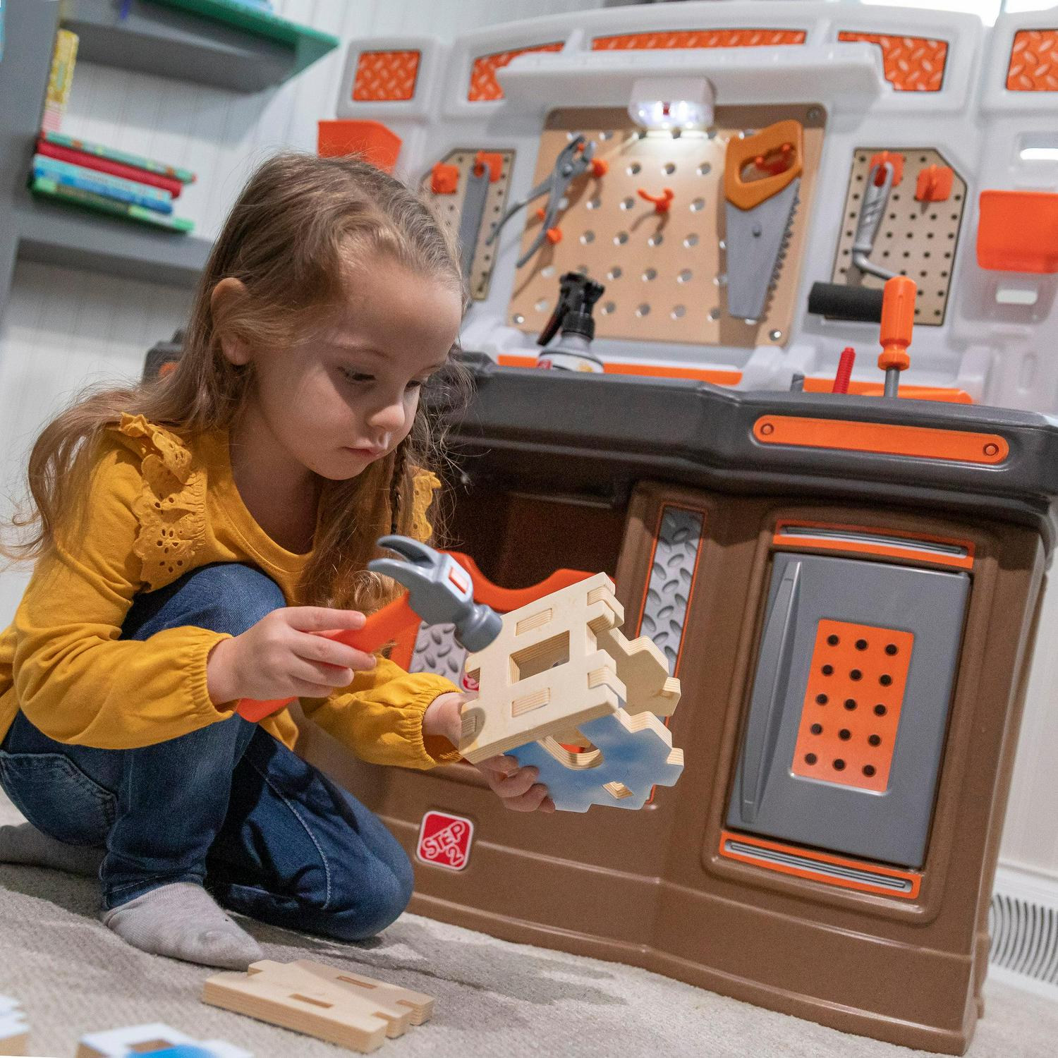 Step2 Big Builders Pro Play Toddler Workshop and Plastic Kid Tool Bench 45 piece Playset