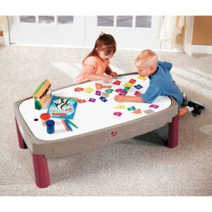 Enjoy sloping roadway action when you buy the Step2 Deluxe Canyon Road Train and Track Table. Perfect for your children’s train set and die-cast cars, this canyon-themed Step2 deluxe train table has a built-in multi-level track for hours of imaginative play. With molded-in tracks and permanent bridges, you won’t have to bother with constantly repairing or resetting this colorful course of looping roads and shadowy valleys. As an added bonus, the included cover transforms the Step2 train table into the perfect craft center for family activities. With a low design for ease of access and handy storage for cars and trains, this Step2 deluxe train table is sure to become a family favorite. Bring home the Step2 Deluxe Canyon Road Train and Track Table today.