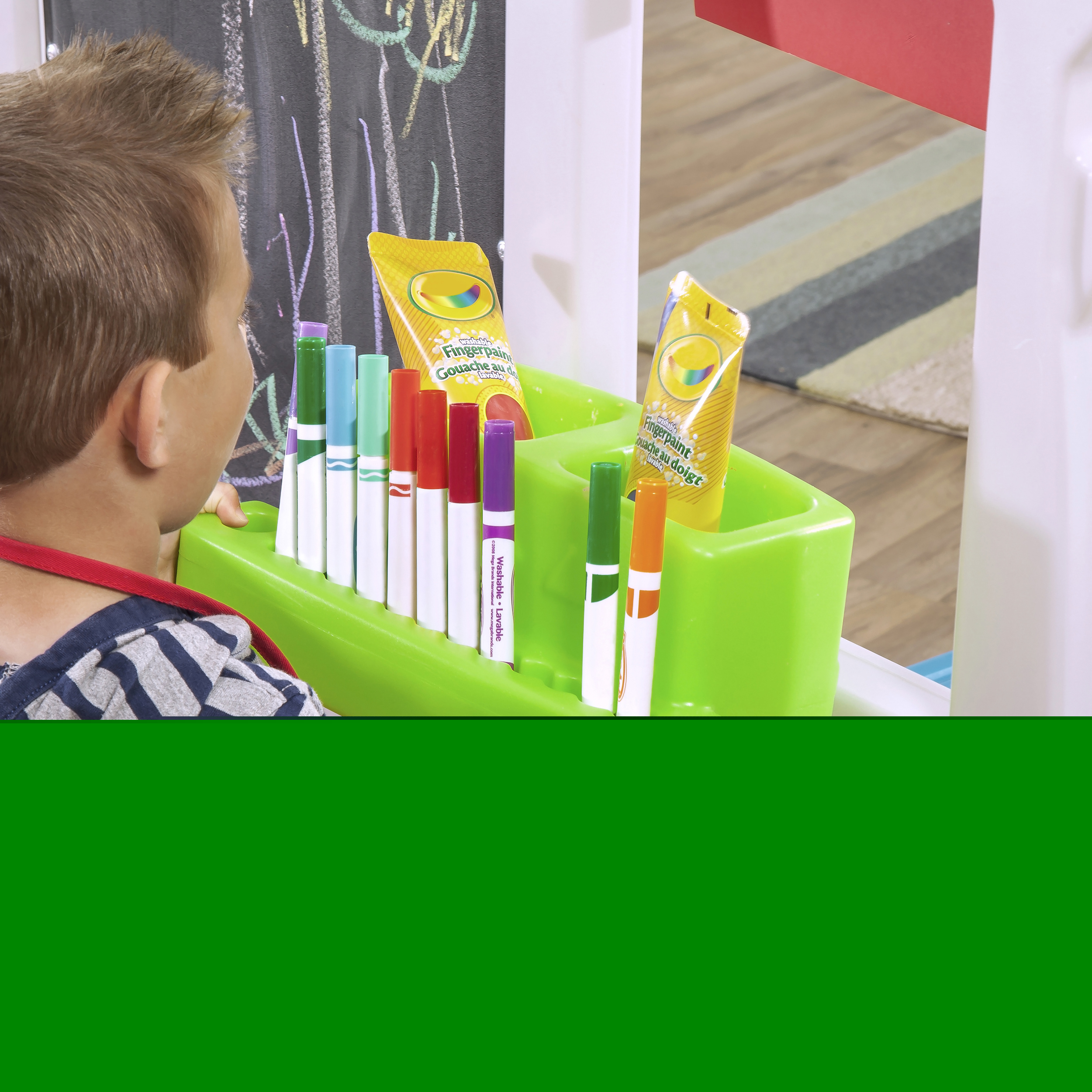 – Molded-in bench and art desk allow little artists to sit down while they create their next masterpiece