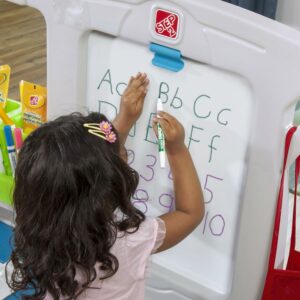 Let your kid s imagination run wild while using the Step2 Great Creations Art Center that includes an easel, activity desk and whiteboard! Little artists will be able to create the next world renown painting or drawing while imagining they are Picasso. Or they might just want to have fun doing arts and crafts using the toddler desk to create a masterpiece! This kid art desk and easel features large storage compartments that will provide much needed space to help organize art books, crayons, finger paints, blocks and other supplies after a fun-filled day of being creative. But the play doesn t end there, because on the other side of this activity center is a whiteboard your child can use to play hangman, tic-tac-toe, learn new words, practice math or just leave mom and dad a cute little note. This multi-functional art center is a made from sturdy durable plastics. Assembled measurements are 45 tall x 40 wide x 27 deep and weighs 30lbs. Lastly, the Step2 art desk with easel for kid comes with a limited 2-year warranty!