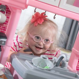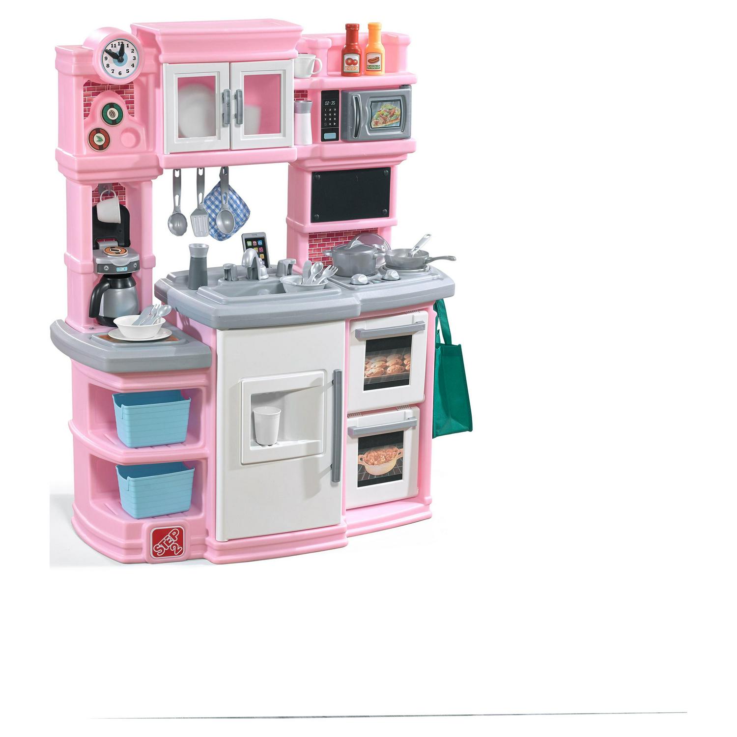 Little chefs will be whippin up smiles for years to come with the Great Gourmet Kitchen Pink by Step2. This kid s play kitchen features a modern design to match today’s home décor including a double oven for double the make and bake fun! With a large countertop, preschoolers will be able to share the pretend play fun of their play kitchen with friends. The imaginative play fun never ends with this Step2 play kitchen. Adult assembly required.