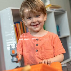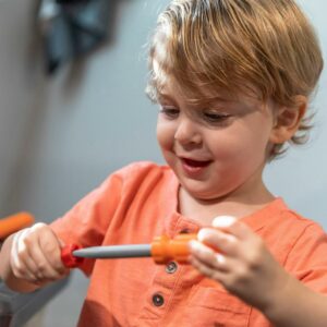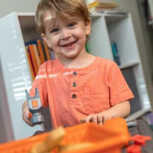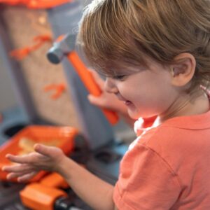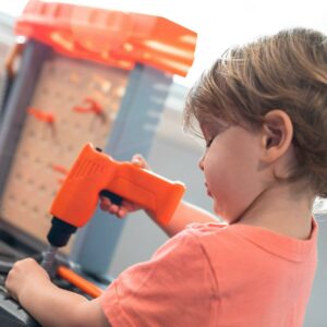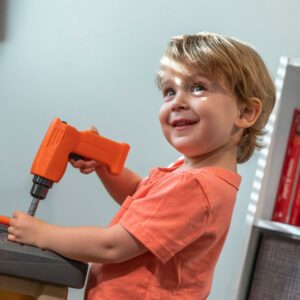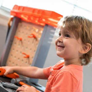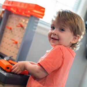 Watch as your little boy or girl build and repair their favorite toys with the Step2 Handyman Workbench! This kid’s tool bench can be used as an indoor or outdoor playset and provides a large work surface for all sorts of creative projects. Whether they are building a bookshelf or fixing a cabinet your kids will have fun playing with the 30-piece play tool accessory set (specifically the play drill)! Watch your toddler mimic you by trying to fix a sticky door using the included plastic hammer and screwdriver. As play time winds down this toddler tool bench includes four storage bins to assist with easy clean-up. The Handyman Workbench is designed for children ages 3 and up and is very sturdy. Lastly, this kid tool bench is made from strong plastics and comes with a 2-year limited warranty!
