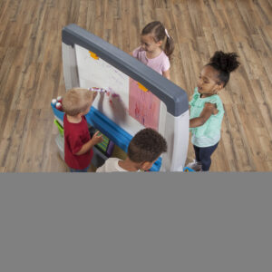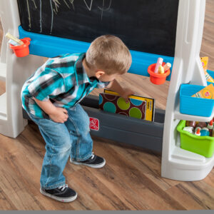 The Step2 Jumbo Art Easel goes beyond being a canvas for creativity; it’s a thoughtful organizer for art supplies. While the product doesn’t come with supplies, the built-in pockets are perfect for storing a variety of items, transforming this easel into a complete art station. Imagine filling the pockets with your child’s favorite vibrant crayons, bold and washable markers, assorted paint brushes for painting masterpieces, tools like erasers and sharpeners for refining their drawings, and colorful chalk for artistic expression on the chalkboard side. You can also add soft modeling clay for three-dimensional creations, craft supplies like glue, child-safe scissors, and construction paper, and even fun and colorful stickers to add flair to their creations. Turn the Step2 Jumbo Art Easel into a hub of creativity, enhancing your child’s artistic experience and imagination all with the supplies you choose to include.