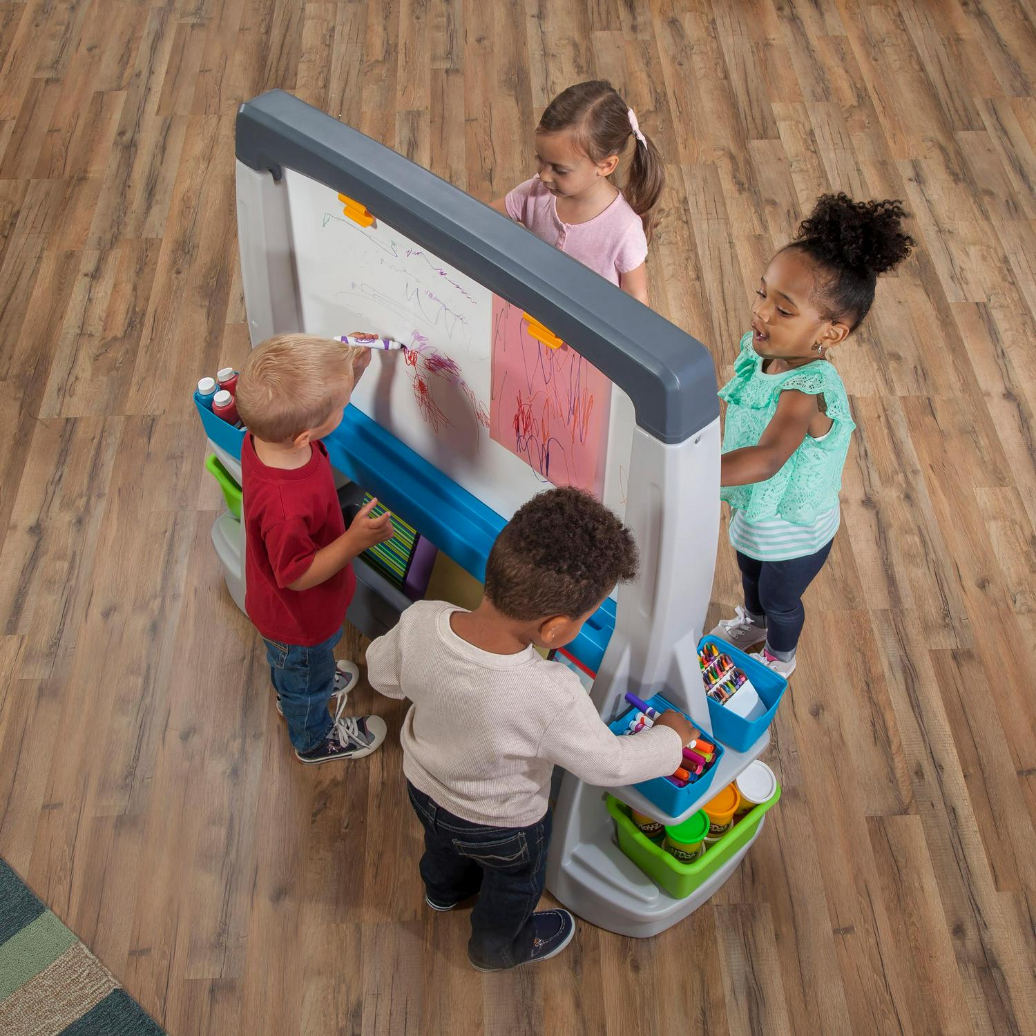– The Step2 Jumbo Art Easel is great for solo creative play and is also a perfect choice for playdates! The two-sided design of this kids art easel has plenty of space to create and display masterpieces.