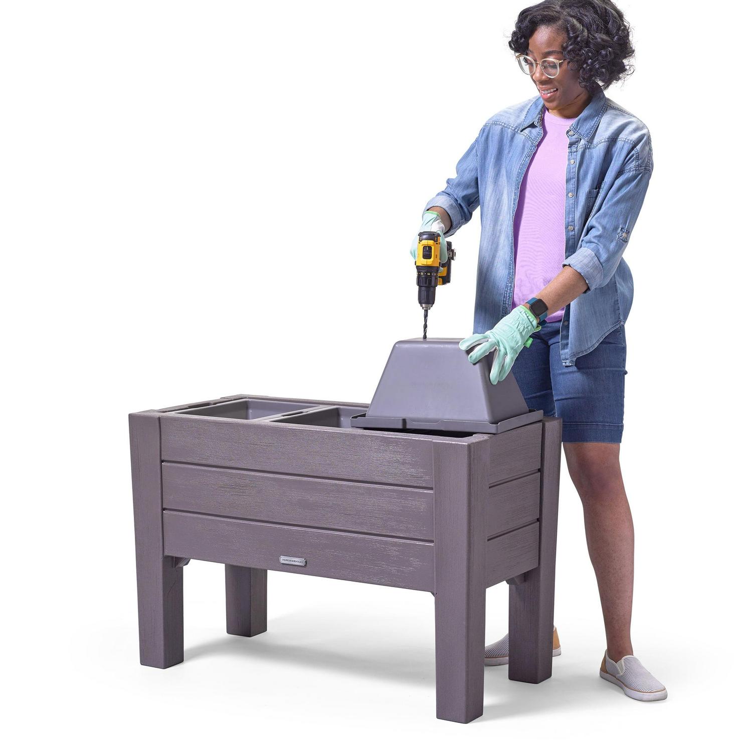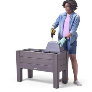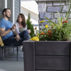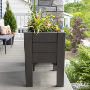 The Step2 Lakewood Dark Cedar raised planter is an outdoor flower, herb, vegetable or garden planter box that will add beauty to your home and garden! This raised planter is rectangle shaped and looks like real wood without having to sand, paint or seal annually so basically maintenance free! This tall planter measures 26 tall x 39 wide weighing 34lbs, includes three removable planter trays and requires less soil than traditional garden planters. Additionally, this resin planter is designed to be light weight, portable and positioned as an outdoor planter for a patio, porch or backyard mainstay. Lastly, this brown standalone planter box comes with a 2-year limited warranty.