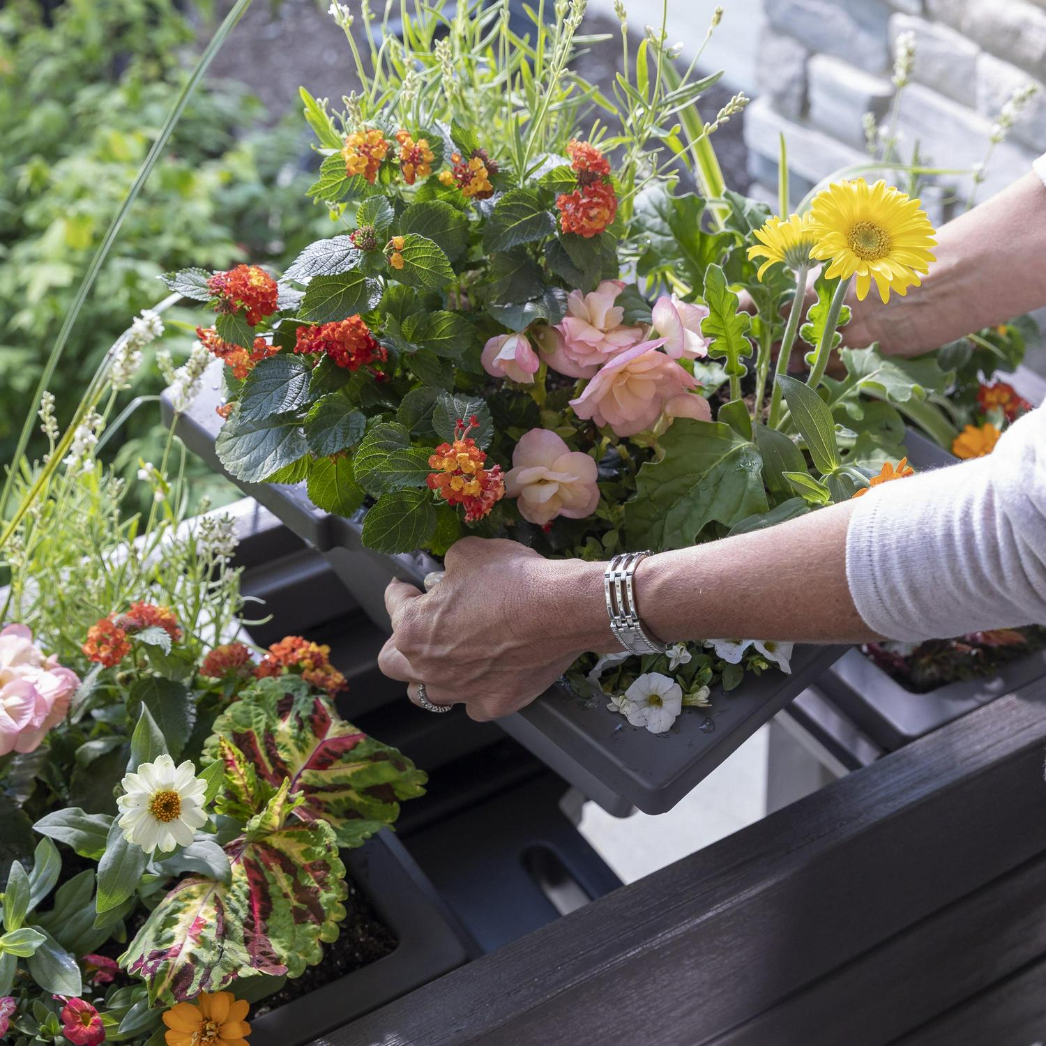 – 3 removable planter trays simplify planting and arrangement of flowers and greenery