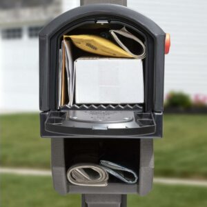 – FEATURES: SureShut magnetic closure ensures the mailbox door stays closed and mail stays safely inside. Includes a convenient newspaper chute.