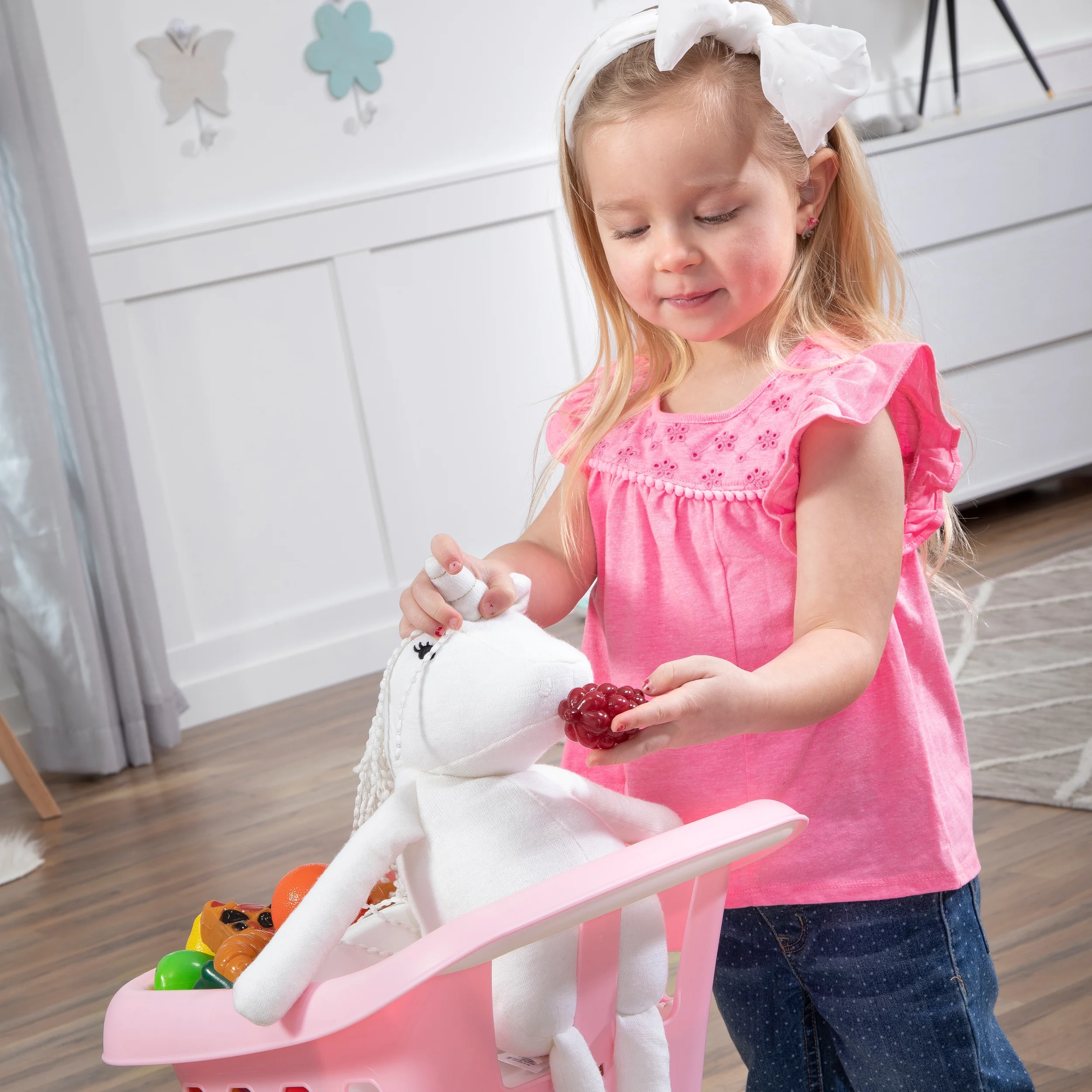 Kids can take the Step2 Little Helper’s Shopping Cart to the grocery store with mom, dad, or grandma to stock up on food and other goodies for a day full of imaginative play! This toy is excellent for put-and-take play and motor skill development, encouraging kids to walk and place toys into their basket as they go. Designed to resemble the shopping carts used by adults, the Step2 Little Helper’s toddler grocery cart features bonus space underneath the basket, allowing children aged two to five to pretend they are purchasing even more delicious groceries. This toddler toy shopping cart for kids to push is lightweight and equipped with a large, easy-grip push handle, this toy cart is simple for toddlers to use and perfect for early walkers. An additional feature is the included doll seat, which lets your little girl keep her baby doll safe while shopping. The spacious pink shopping cart basket provides ample storage, ensuring your child can keep their treasures safe and organized when playtime is over. After the shopping trip, it’s time to cook up all those pretend groceries on a Step2 toddler play kitchen set or have a BBQ on a kids’ toy grill. Whether your child is shopping for imaginary fruits and vegetables, or stocking up on pretend snacks and treats, the Step2 Little Helper’s Shopping Cart offers endless opportunities for creative play and learning. By engaging in this fun activity, children develop important life skills, enhance their hand-eye coordination, and gain a sense of independence and responsibility. The sturdy plastic construction ensures durability, so it can withstand the energetic play of young children. Its vibrant colors and realistic design make it appealing and engaging for kids, sparking their imagination and keeping them entertained for hours. The Step2 Little Helper’s Shopping Cart is not just a toy; it’s a tool for growth and development, making everyday activities like shopping a fun and educational experience for your little one. Let your child explore the world of pretend play and enjoy the benefits of this fantastic toy that combines fun, learning, and imaginative exploration.