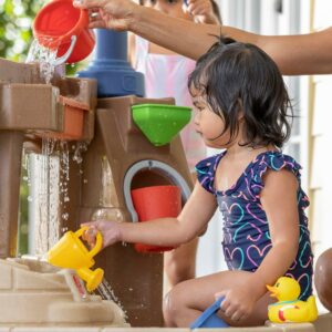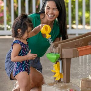 Discover the wonder of water play with the Step2 Pump & Splash Discovery Pond water play table. This water garden is designed for little ones to wade, splash, and play in their own way as both an indoor or outdoor kid toy. Activate the water pump to get the water flowing through the pond and swivel it around into the fill-and-spill bucket to create a big splash and rain shower effect! Turn the pump into the water trough for a showering splash into the pond with our signature waterfall tray action. There s even a secondary water trough for little ones to dump water and activate the funnel with spinner to create a water cascade down the lazy maze back into the pond! Little ones will have a blast creating tons of water play fun with the steady flow of the water pump in their very own water garden. Packed with activities for solo and parallel playtime for multiple kids, this outdoor water activity table toy for toddlers features fun ways to teach sharing, taking turns, social skills, and even cause and effect through play. The pond base of the water play table measures 40 inches x 30 inches and is large enough for small toddlers to sit in as a wading pool with parental supervision. The Pump and Splash water table by Step2 comes with a 10-piece accessory set which includes a bucket, mini watering can, pouring cup, lily pad and squishy frog that squirts water to name a few. Lastly, with the Step2 logo on the product you know this Step2 water table for a kid is made to last, built with sturdy plastics, age appropriate for ages 2 years and up and comes with a limited warranty. Step2 makes great outdoor kids toys that bring the whole family together! Adult Assembly Required.