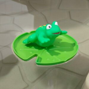 – In the box: Water pond with channels and tray, water pump, funnels, water-activated spinner, 10-piece accessory set including a bucket, lily pad with squishy frog and fish squirt toys, and more.