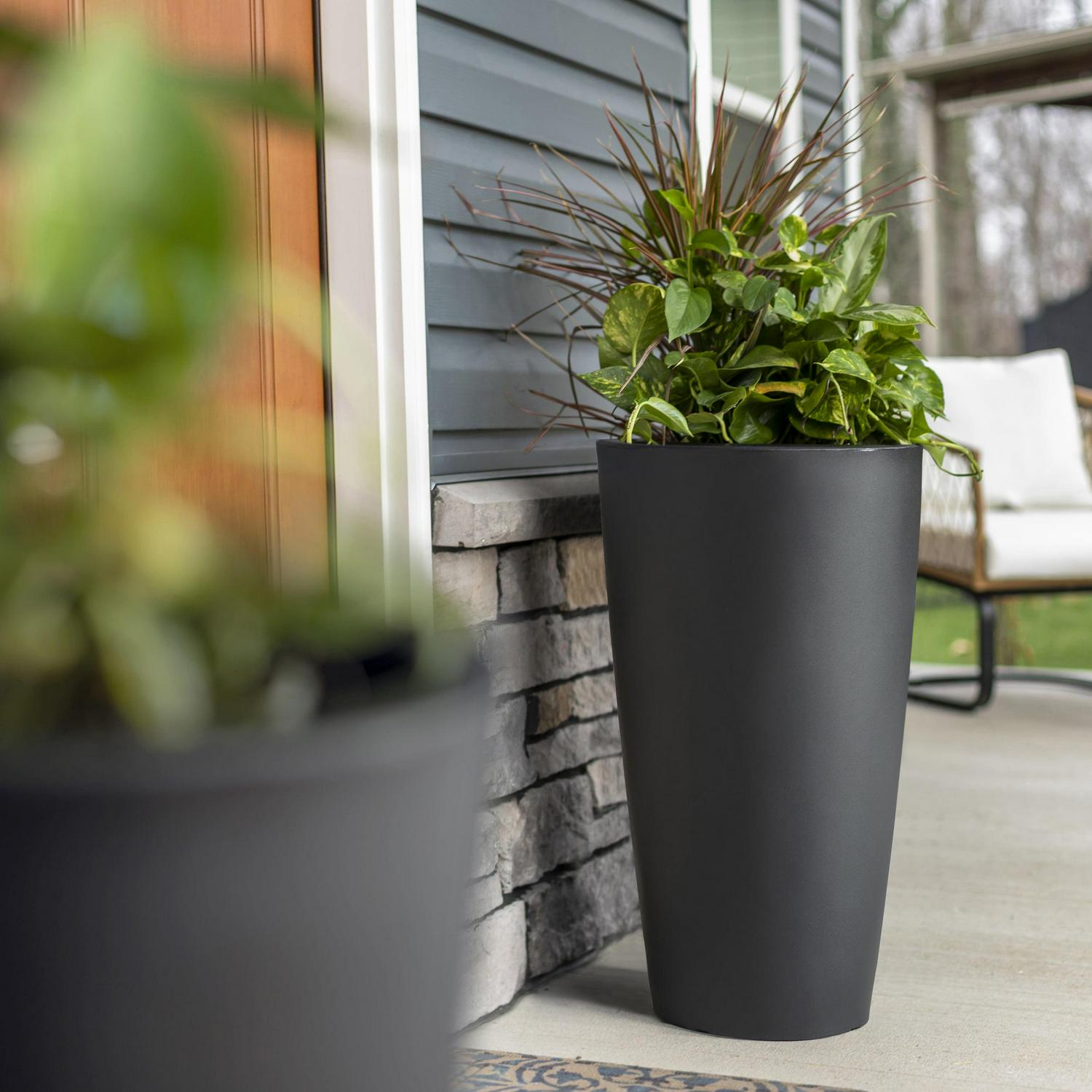 – TALL PLANTER: Update your home s appearance with fresh plants in this beautiful Tremont Round Indoor and Outdoor Planter. Measuring 15 in. x 15 in. x 28 in., the planter looks stunning on your porch, patio, or even indoors.
