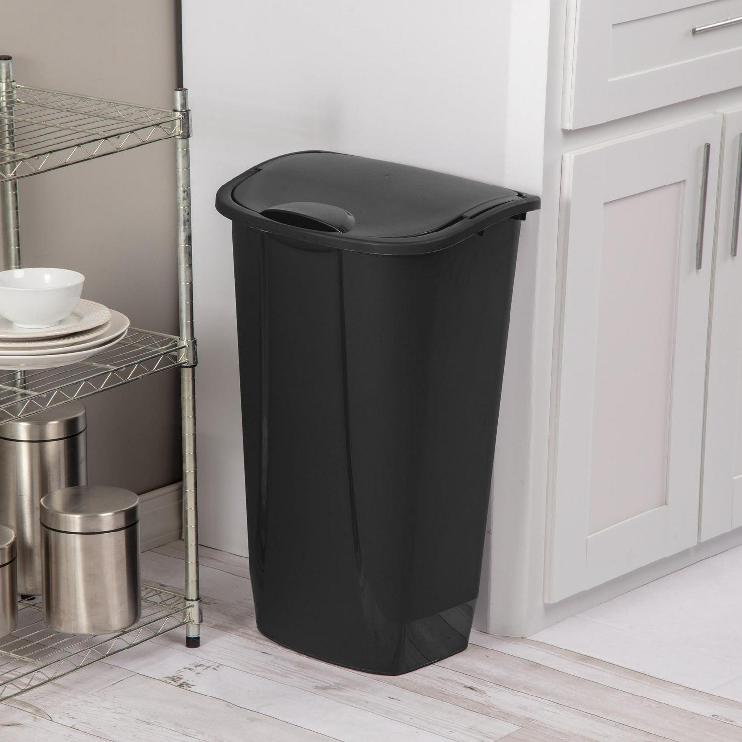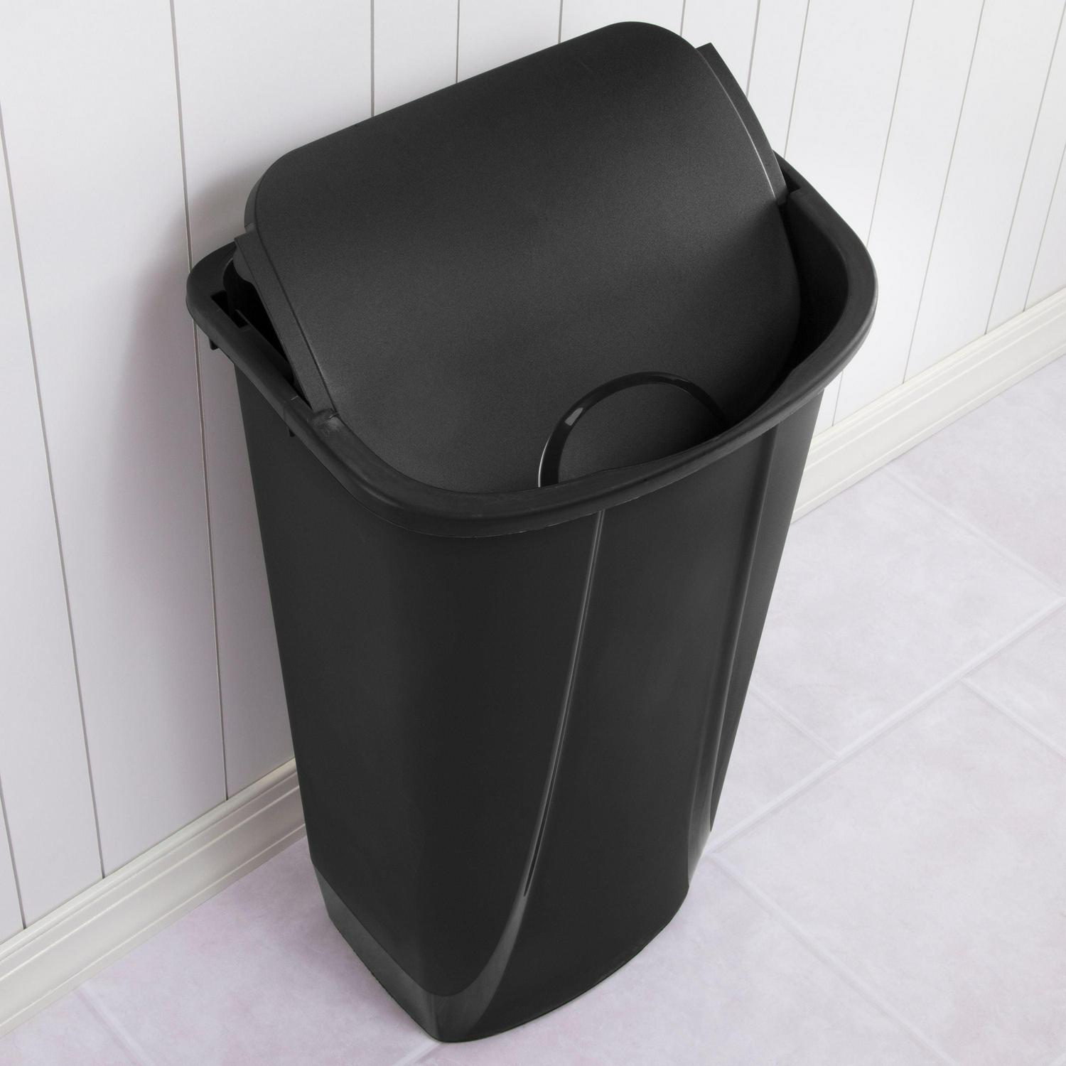 – The Sterilite 11 Gal SwingTop features a dual actin lid for easier disposal