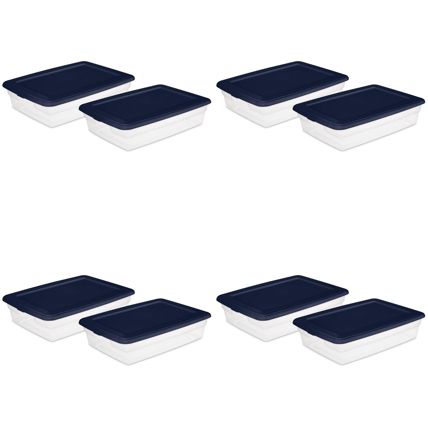 Sterilite 28 Qt. Storage Box Plastic, Blue Cove, Set of 8