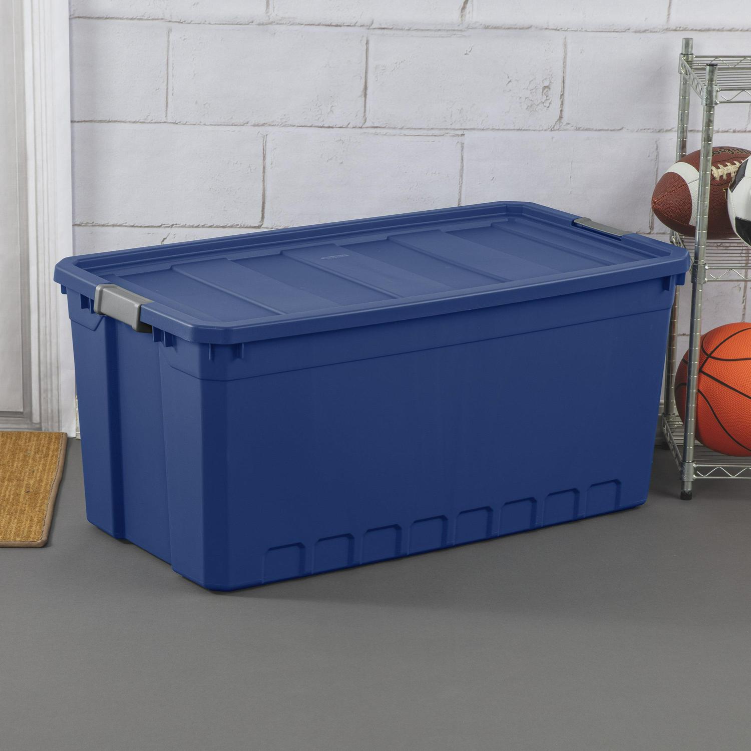 – The 50 Gallon Stacker Tote is the perfect size for camping gear, sports equipment, seasonal decorations, and other bulky items