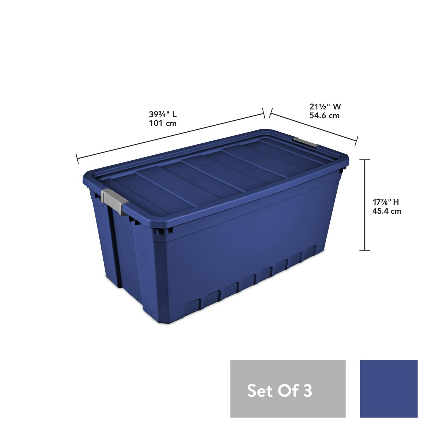 Sterilite 50 Gallon Stacker Tote Plastic, Stadium Blue, Set of 3