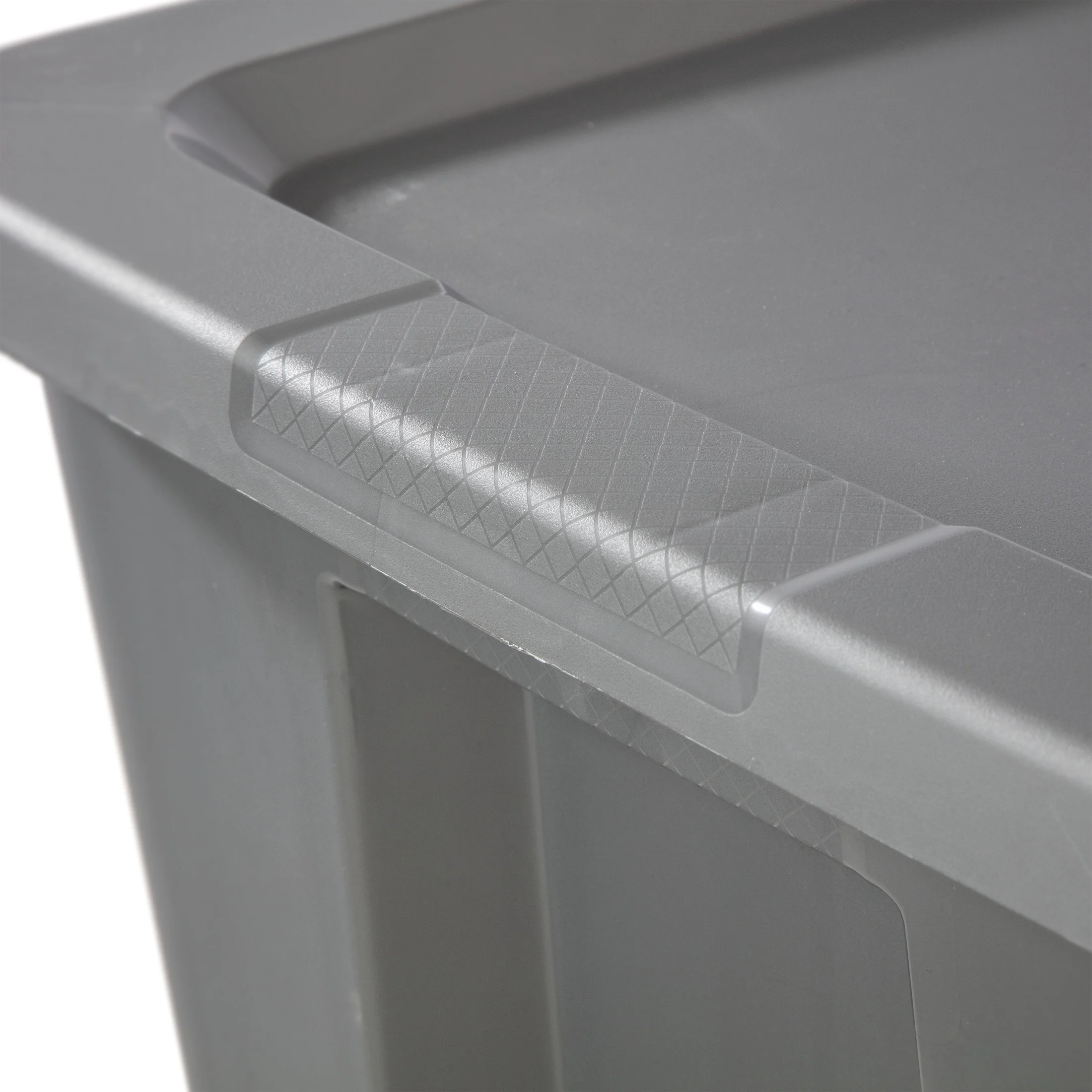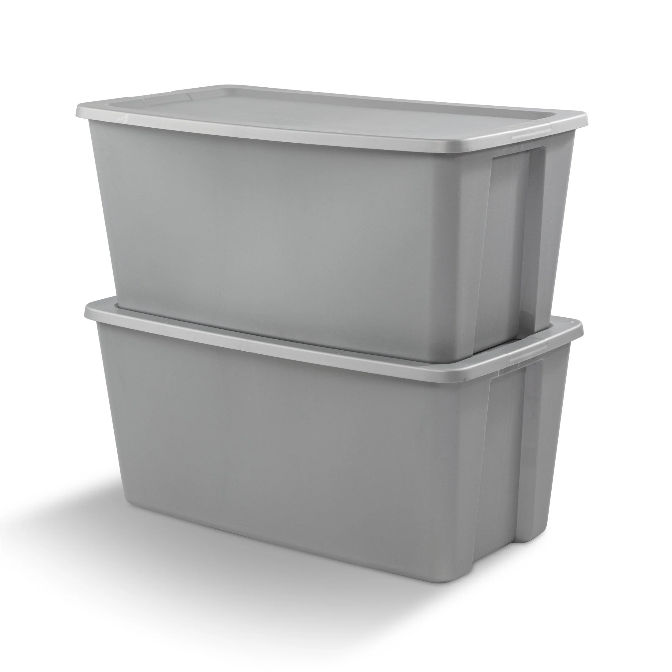 Sterilite Adult Plastic 50 Gal. Tote Box Plastic, Titanium, Set of 4: Outside Dimensions: 40″ x 22 1/8″ x 18 1/8″ Jumbo sized 50 Gallon Tote is ideal for storing away and concealing those larger, bulkier items Set of 4 Opaque base and lid allows contents to be stored and concealed out of site – Titanium Interior Dimensions at bottom: 33″ x 17 1/4″ x 17 5/8″ This extra-large size tote is ideal for a variety of lightweight household storage needs, such as bedding, sporting gear and bulky items Integrated handles with textured surface provides a sure grip for more comfortable carrying Lid snaps firmly to base to ensure contents stay contained and concealed Deep recessed lid allows for secure stacking to maximize vertical storage space BPA-free and phthalate-free