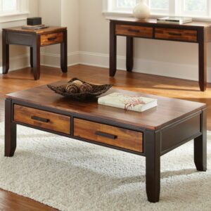 Let the Abaco Cocktail table take center stage at your next gathering. This cocktail table features two drawers for storage and is offered in a two toned cordovan cherry finish.
