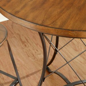 Perfect in your bar or breakfast nook, the Steve Silver Adele Round Counter Height Dining Table stands tall and has strong transitional style. The perfect height for walk-up or sit-down guests, this table features a round birch veneer top that’s perfect for holding drinks. It also makes a stylish spot for a casual meal. The arched metal base with X-wire stretchers add contemporary charm.