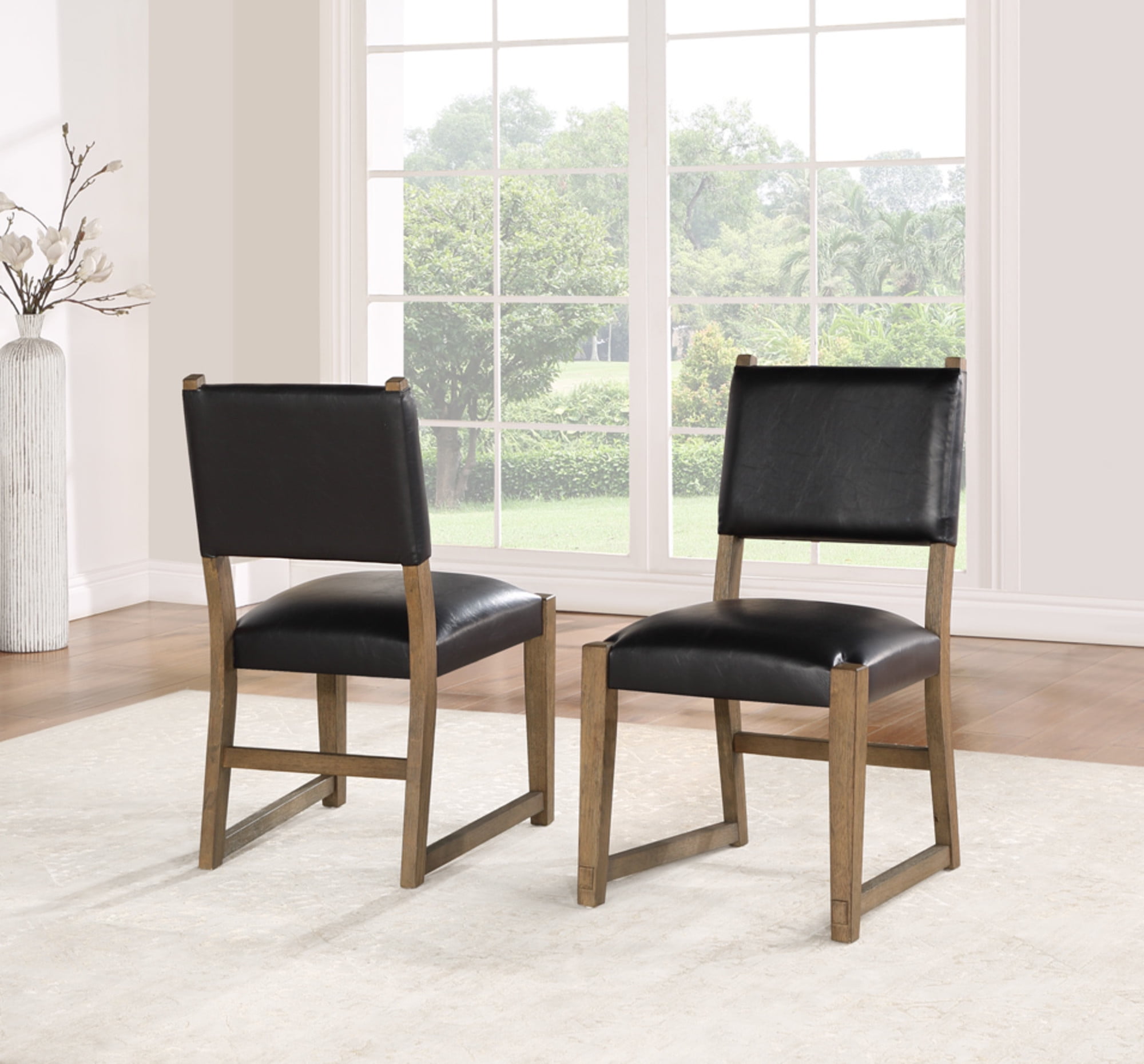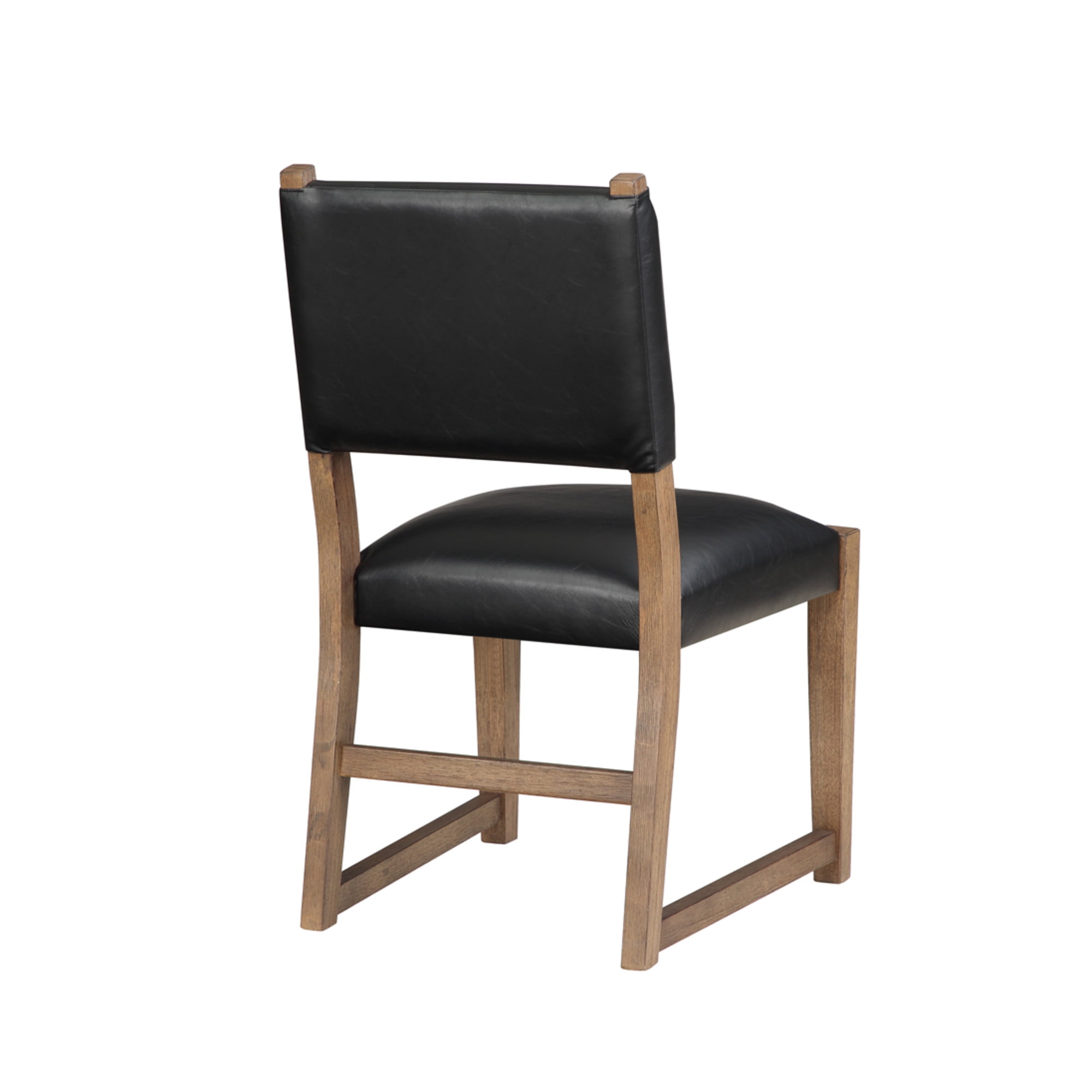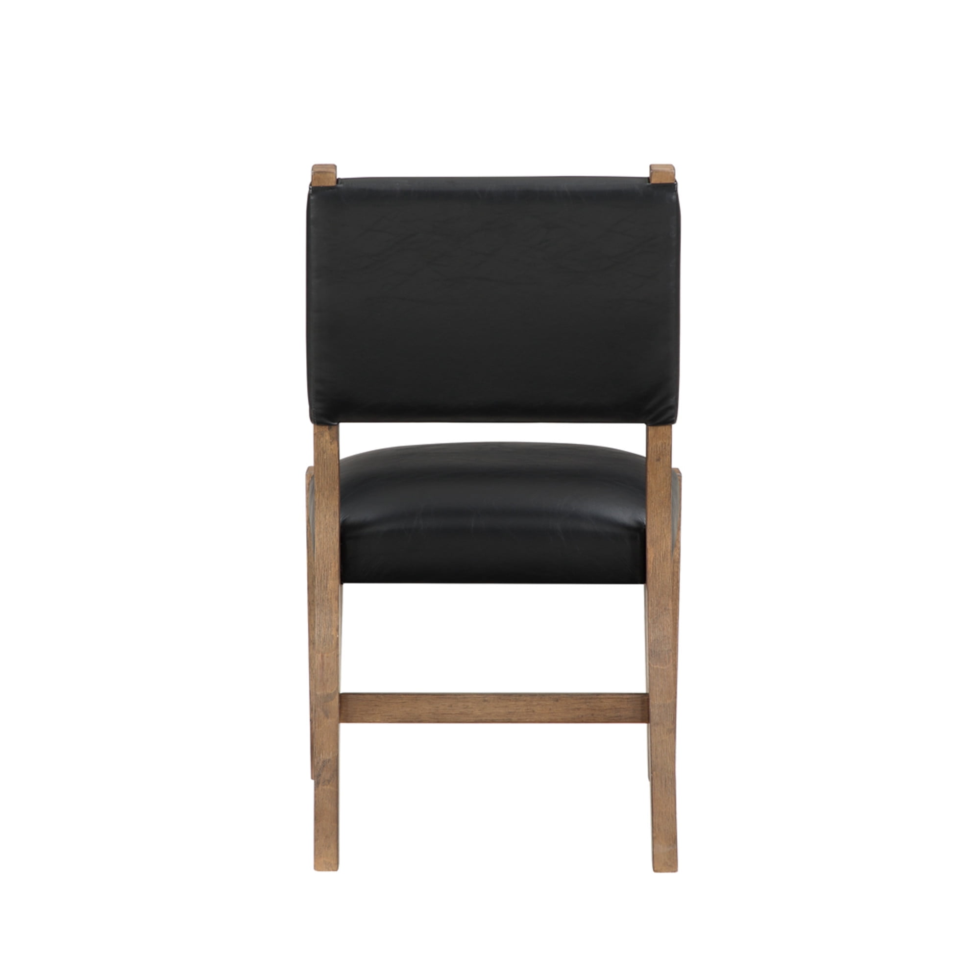 Rustic styling and soft seating in a chair comfortable as a dining chair, guest chair, or office setting. The Atmore Side Chair features a beautiful easy-care black faux leather seat and back accented with a hand-stained deep driftwood finished solid wood frame. A semi-sled base and wood score distressing add elements of industrial design and primitive chic to fit casually sophisticated interiors. Features: Crafted from Asian hardwoods, pine veneers, MDF, Plywood and iron accents Dark Driftwood / Black Mortise-and-tenon joinery is reinforced with screwed corner blocks for exceptional structural integrity Weight Capacity: 300 lbs. Easy Assembly, all tools included Black faux leather chair is easy care and super plush with the look and feel of real leather Hand-stained in a natural multi-step dark driftwood finish to highlight the natural grain and knots of the wood Intentional wood scoring, distressing, and saw rasping for a chic, primitive style Plastic glides help prevent mars or scratches to floors 3A packaging ensures damage-free parcel Specifications: Product Weight: 16.5 lbs. Product Dimensions: 19.63″W x 22.5″D x 34.5″H