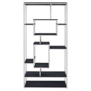 Add a boost of contemporary style to your décor with the Steve Silver Co. Alize 71 in. Twelve Shelf Decorative Bookcase. Variegated shelving lends a modern, artsy effect to the room. The sleek metallic frame contrasts beautifully with the rich brown finish of the shelves. Pair with the matching Alize writing desk for a complete look.