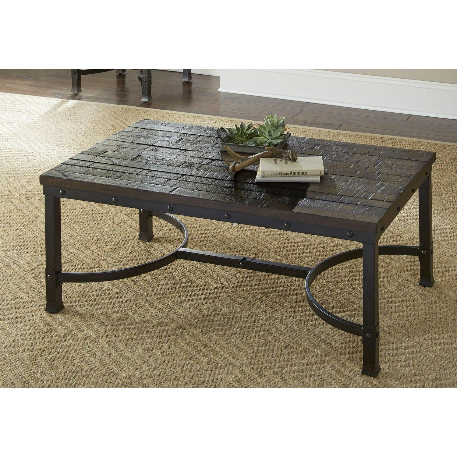 If you love the character and charm of antique furniture, you’ll adore the Steve Silver Co. Ambrose Cocktail Table. With its rustic industrial sensibility, this cocktail table features a butcher-block style tabletop that’s crafted of solid basswood and veneers in a dark brown rustic honey finish. Below, the iron frame is finished in a complementing ebony tone, and its demilune stretchers and decorative rivets add to the rough-hewn, vintage appeal.