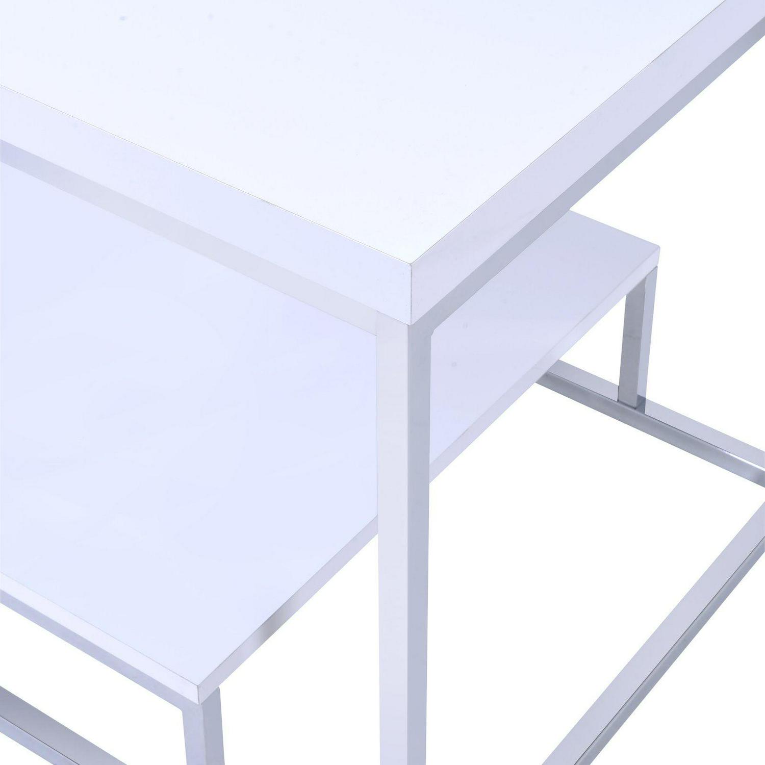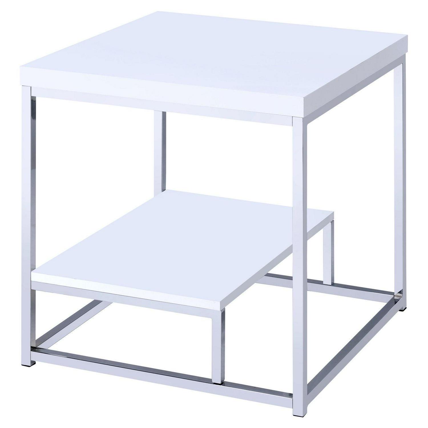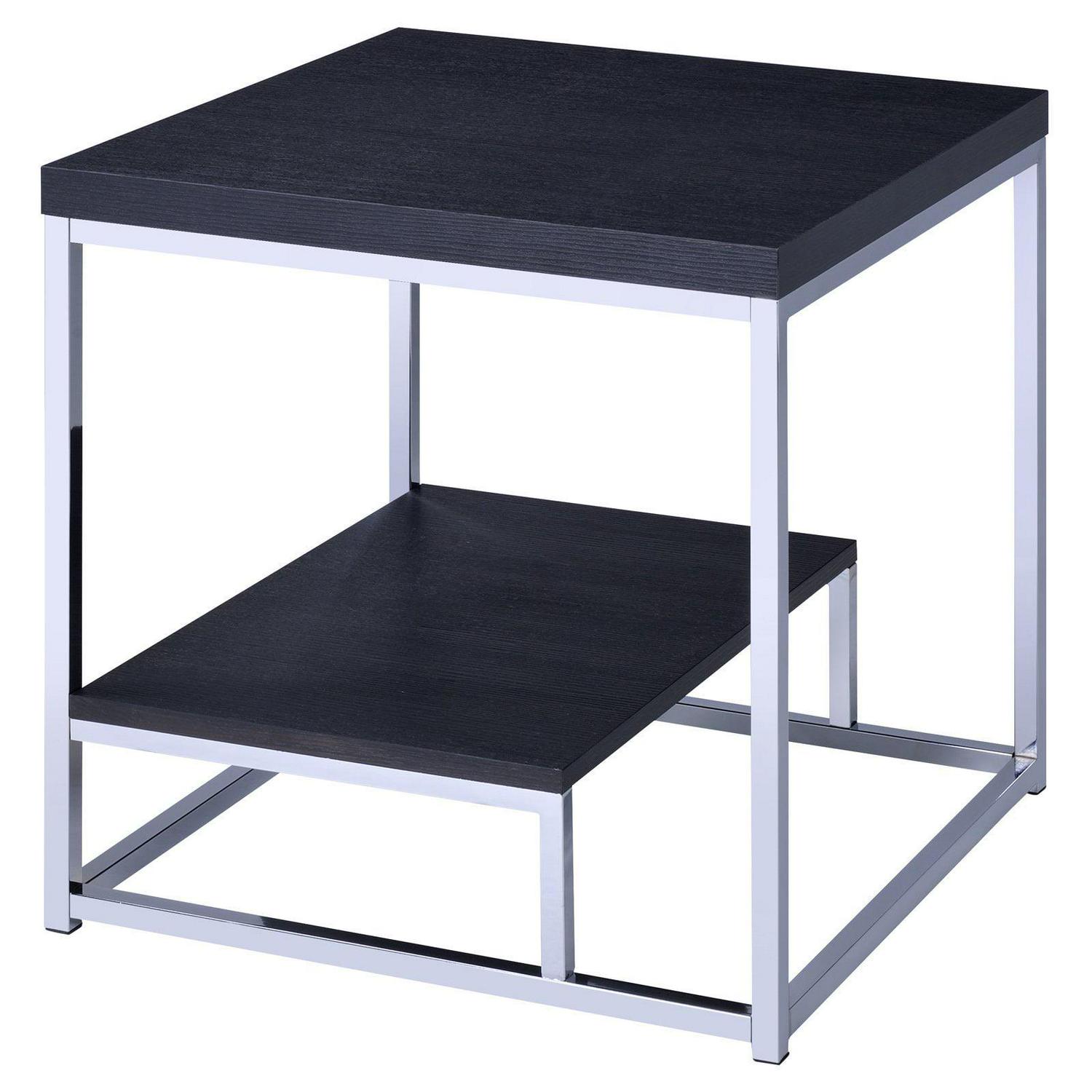 – Acrylic tabletop looks like real wood and is supported by a chrome frame